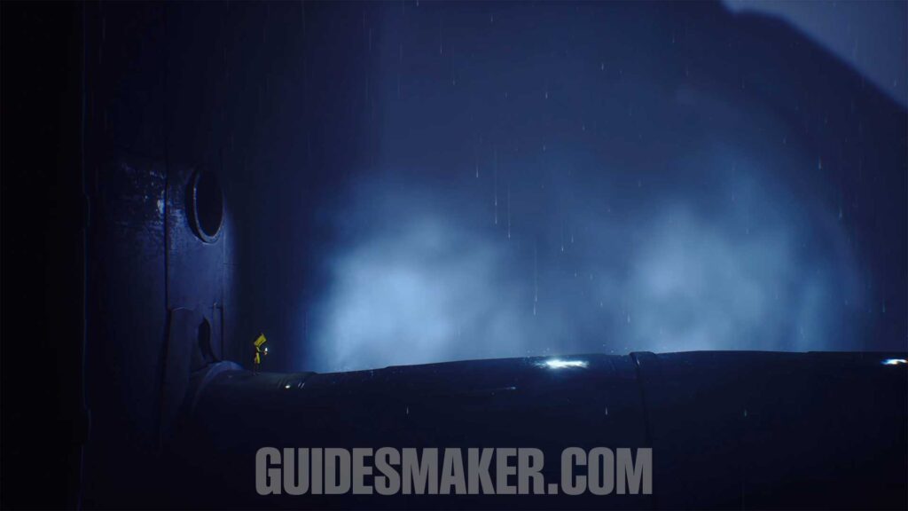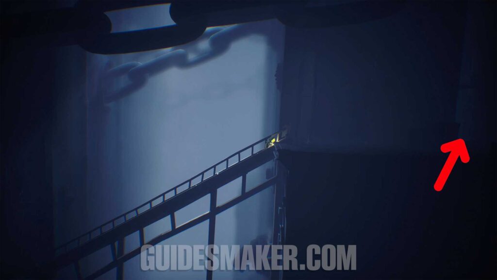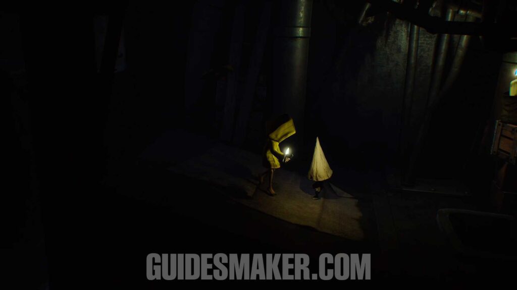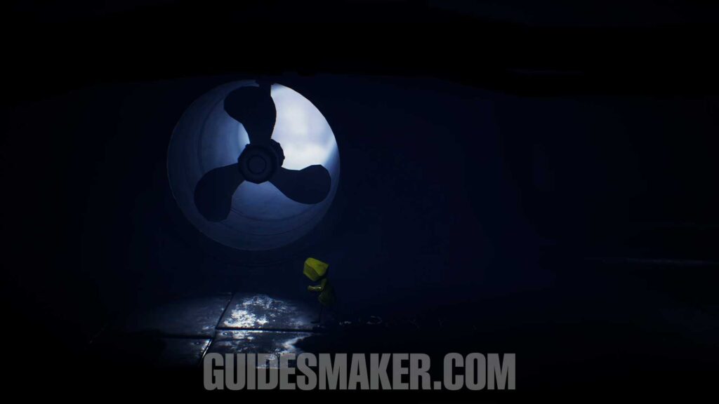 After progressing a bit further through Chapter 2, Six will start to feel hungry again. At this point, you will pass by a spinning fan and then go under a duct. The light point will be directly in front of you right after passing under the duct.