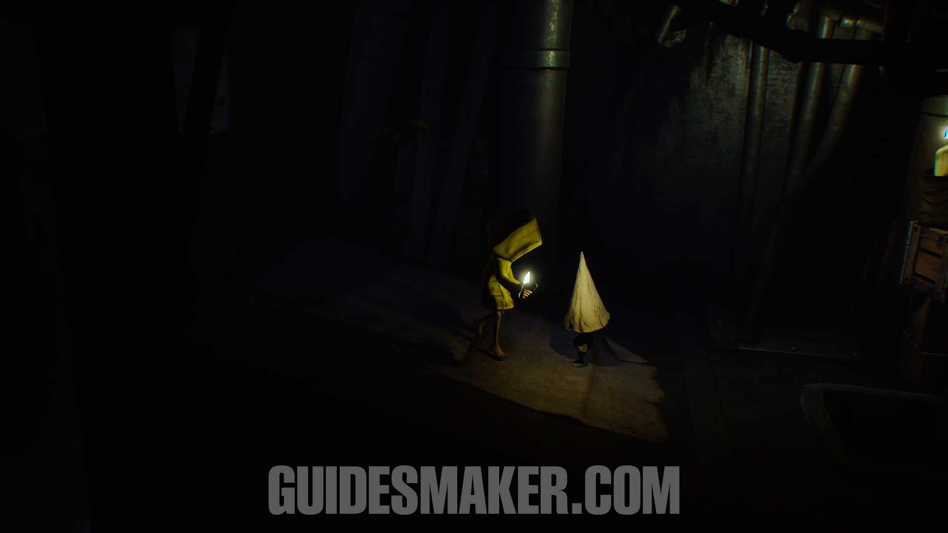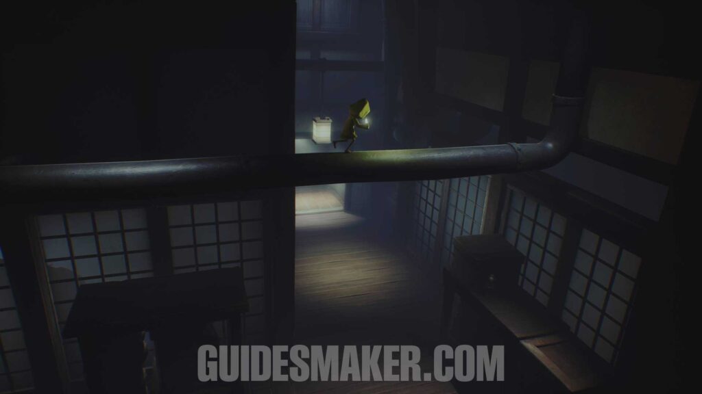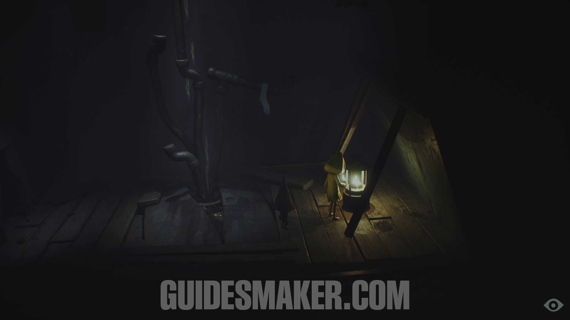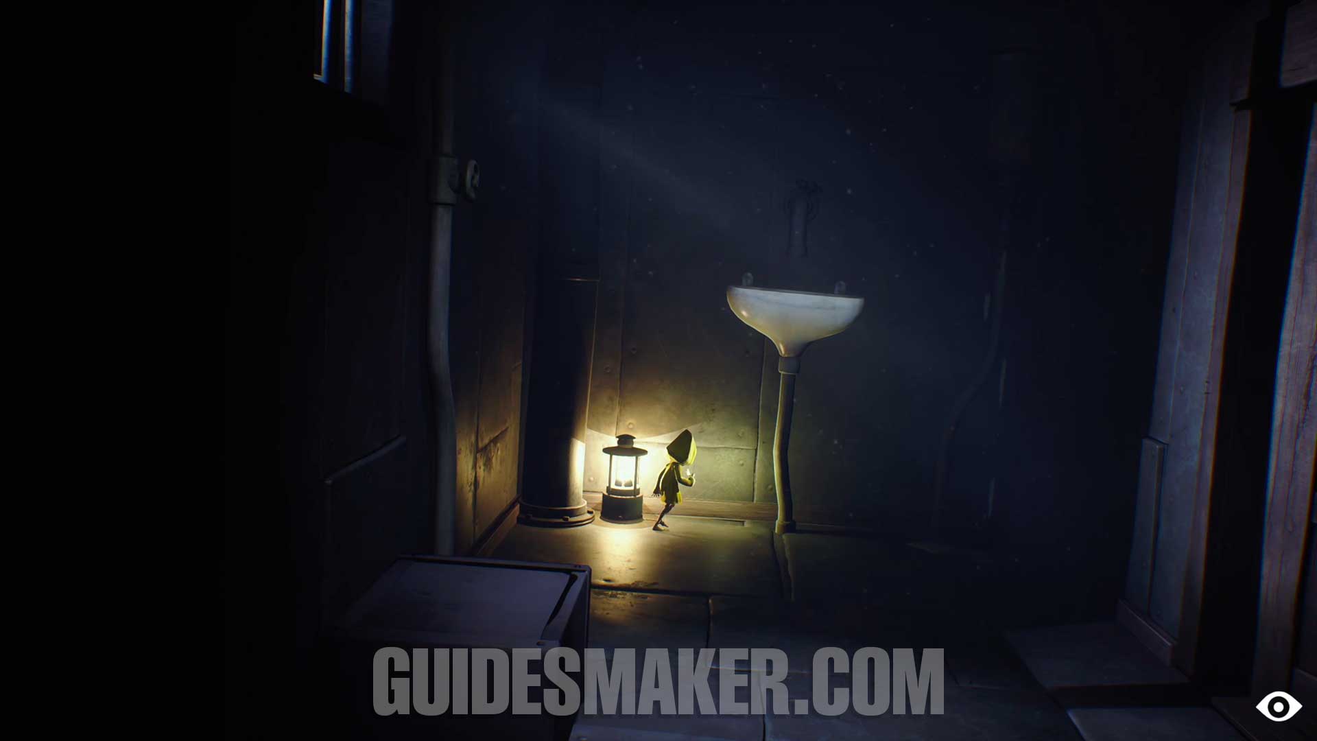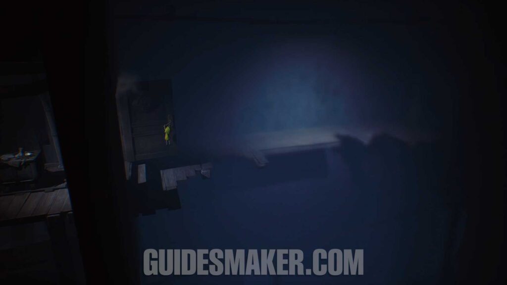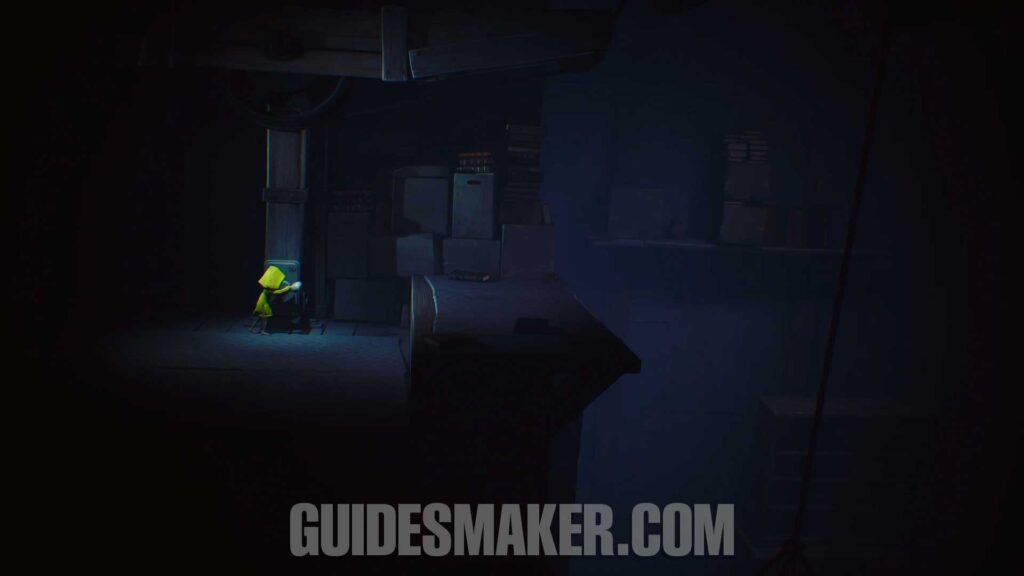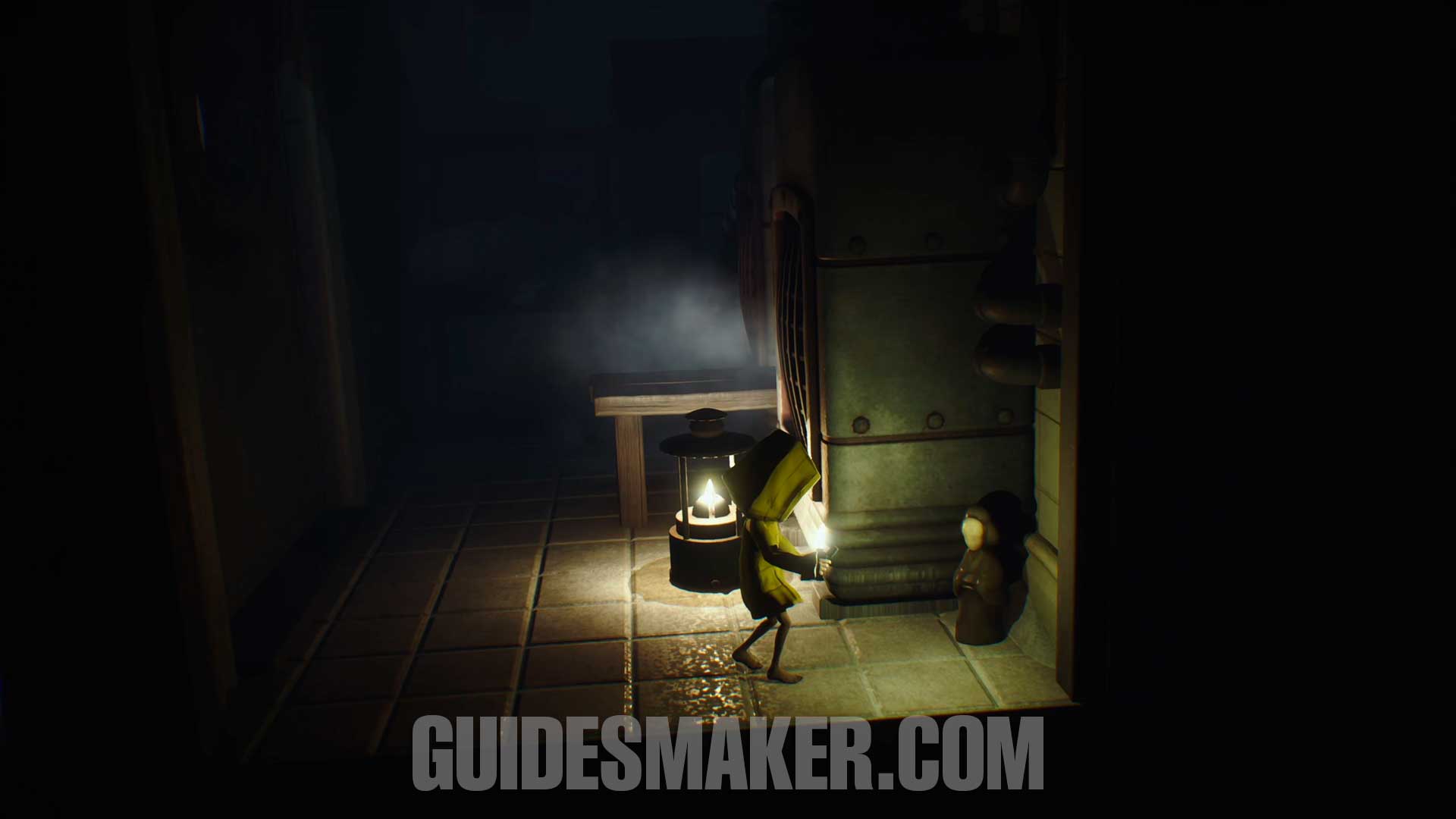 After taking the elevator up again, you will have to hide from the monster. After that, climb onto the shelves on the right side of the kitchen to activate this light point.