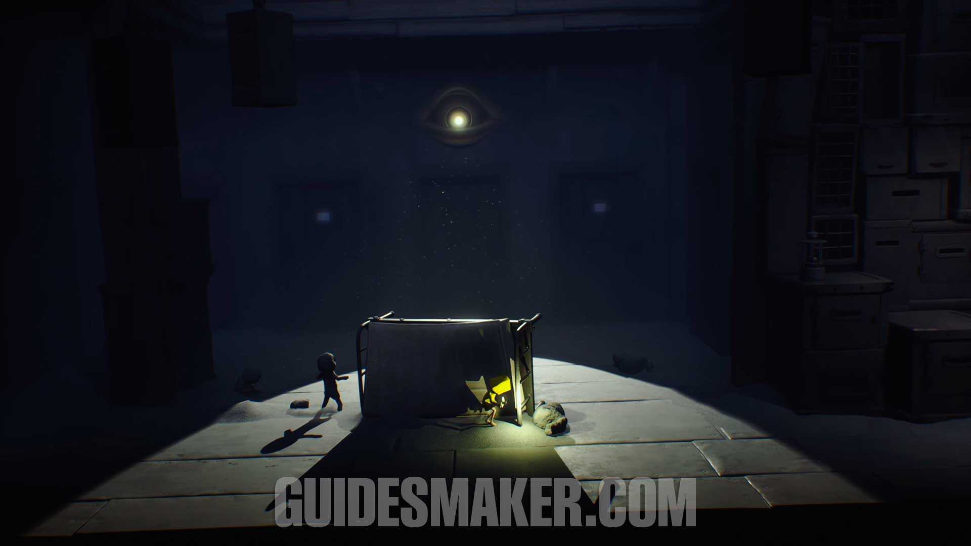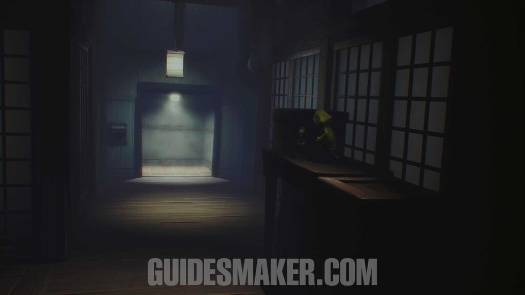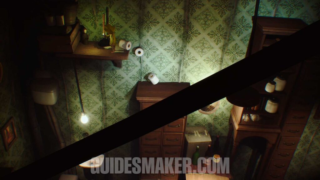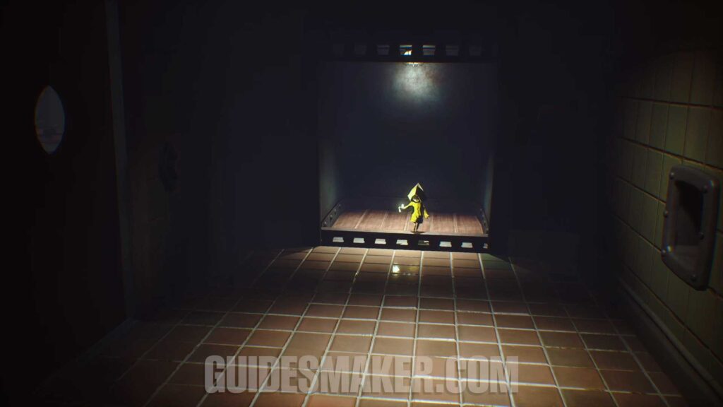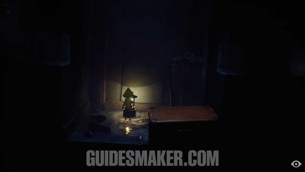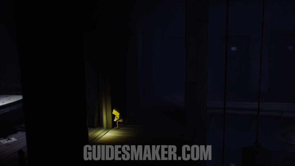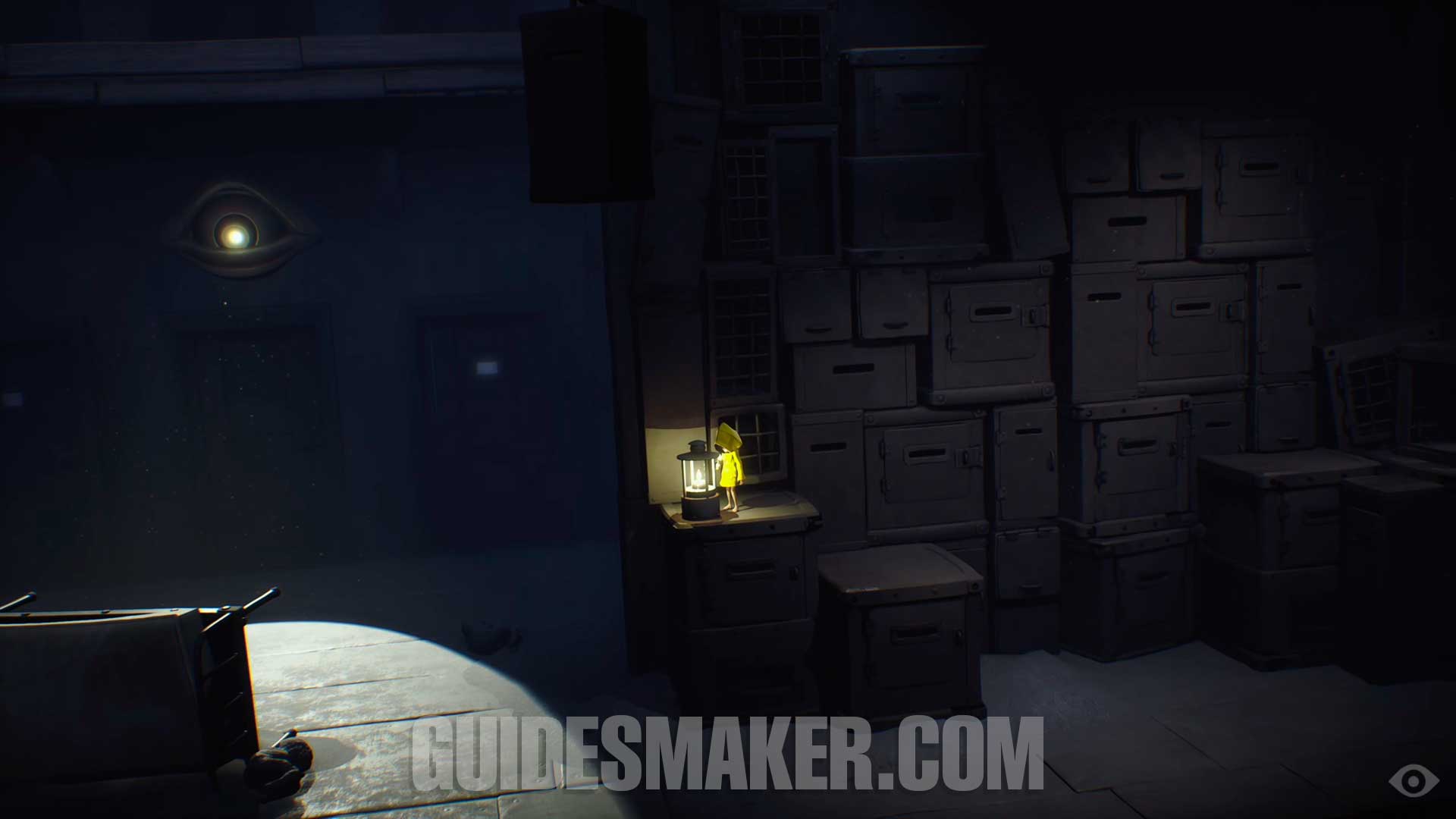 After taking the elevator up again, you will have to hide from the monster. After that, climb onto the shelves on the right side of the kitchen to activate this light point.