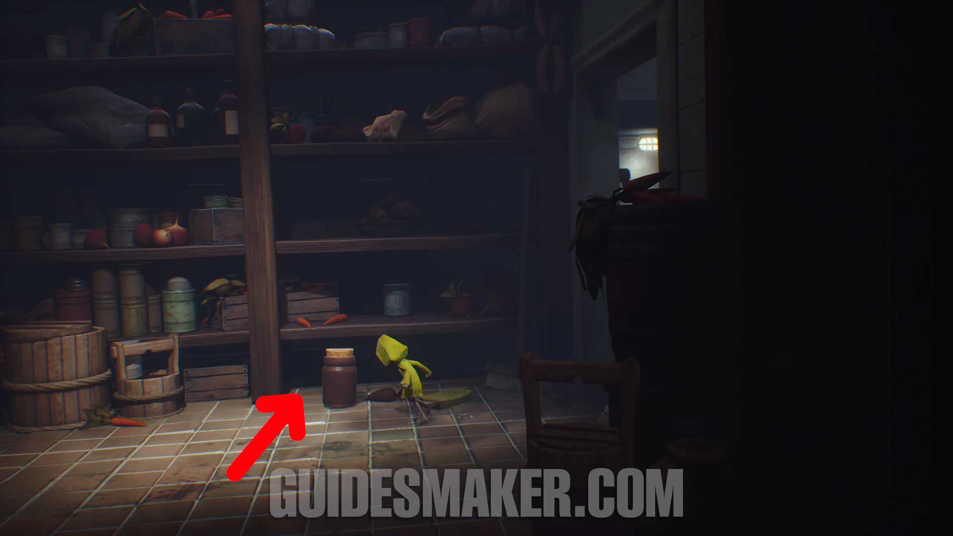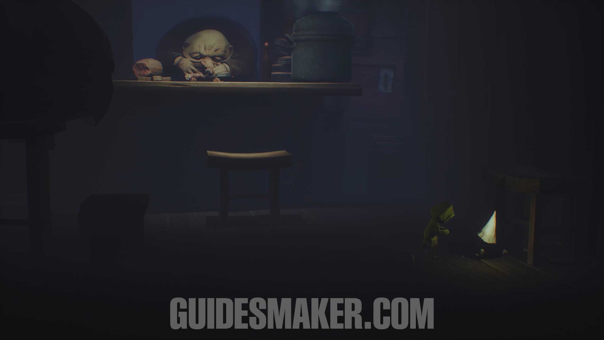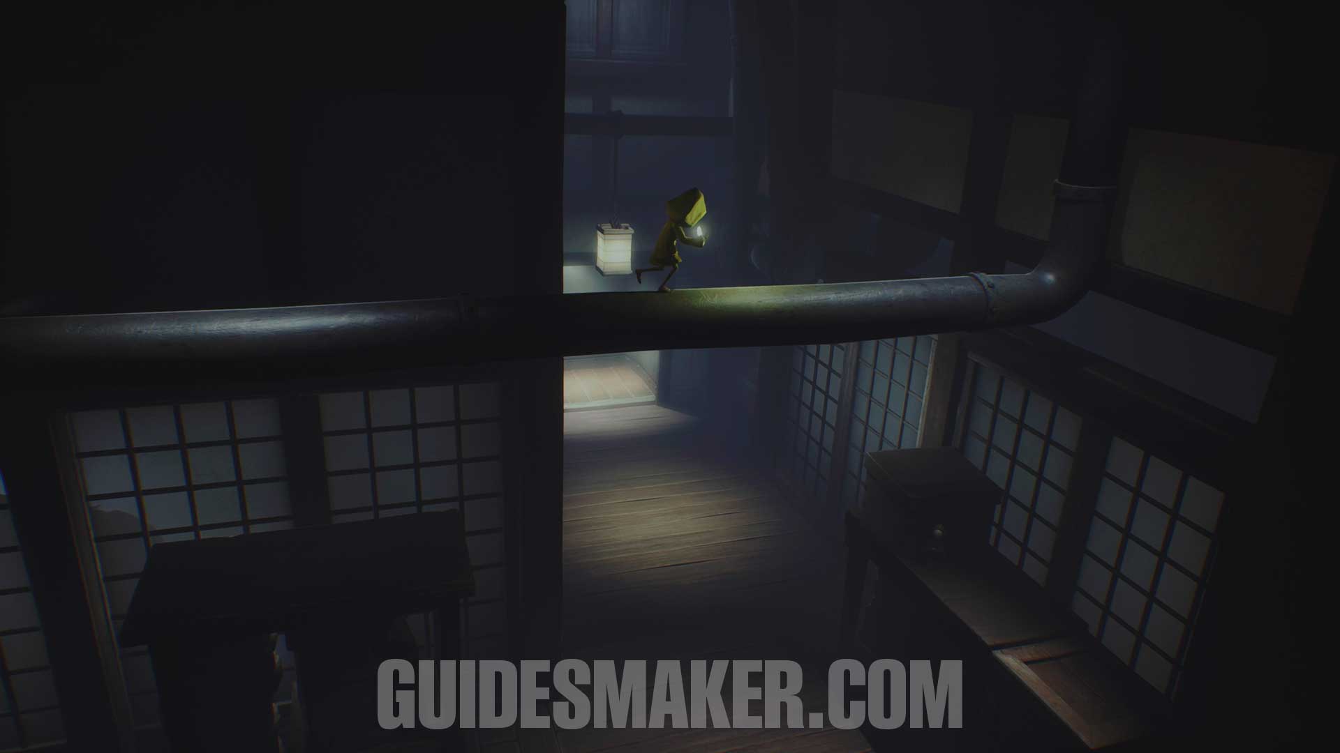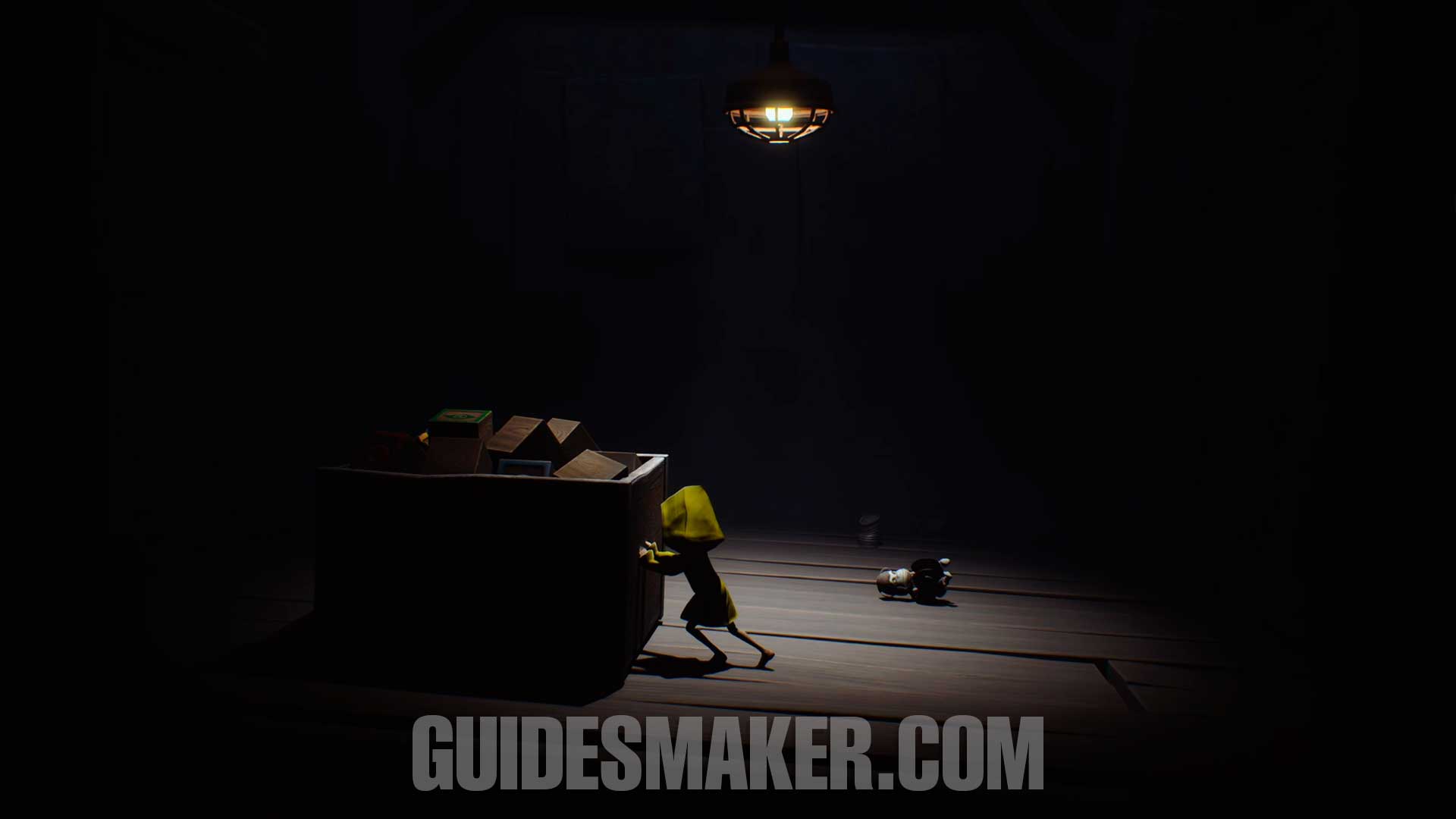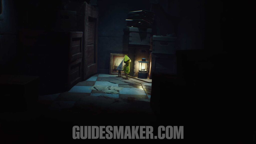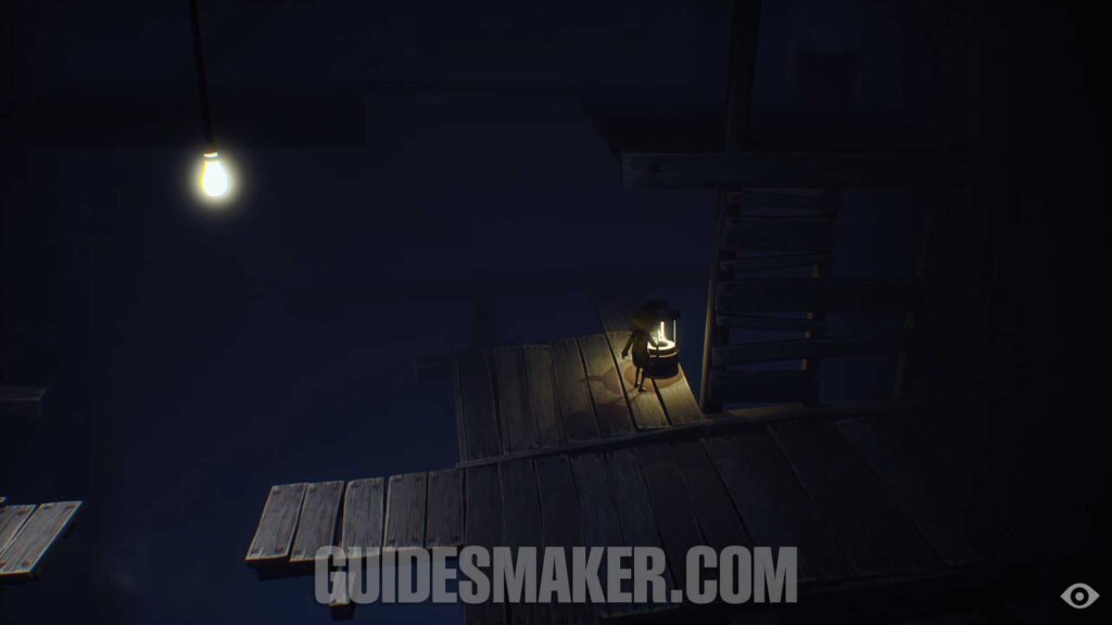 After taking the elevator up again, you will have to hide from the monster. After that, climb onto the shelves on the right side of the kitchen to activate this light point.