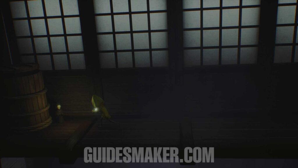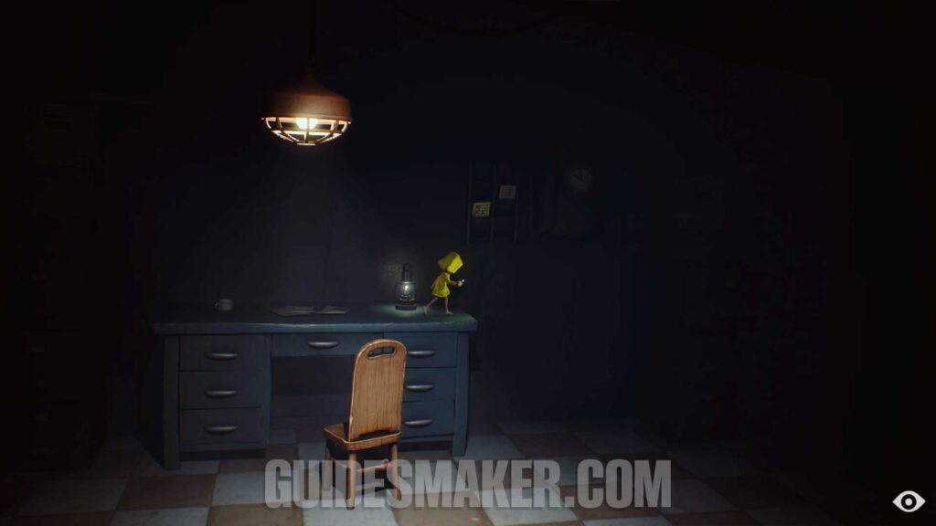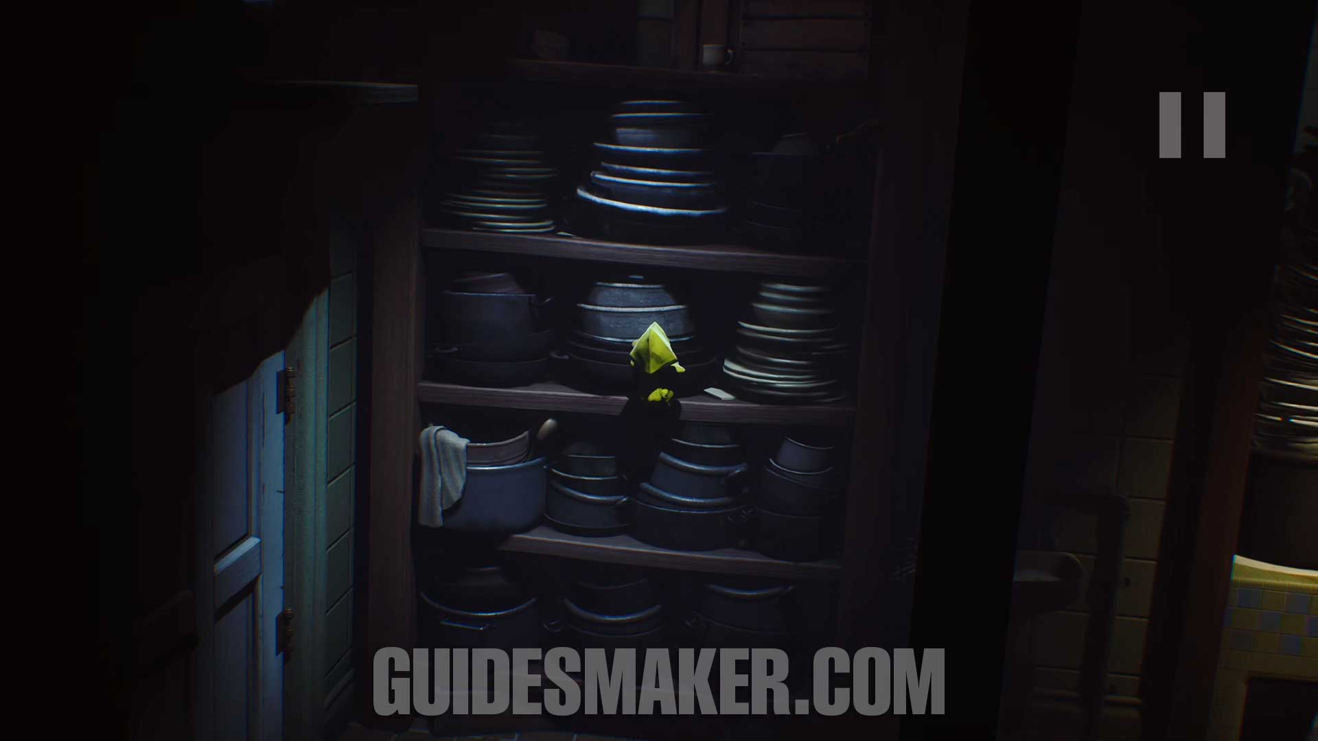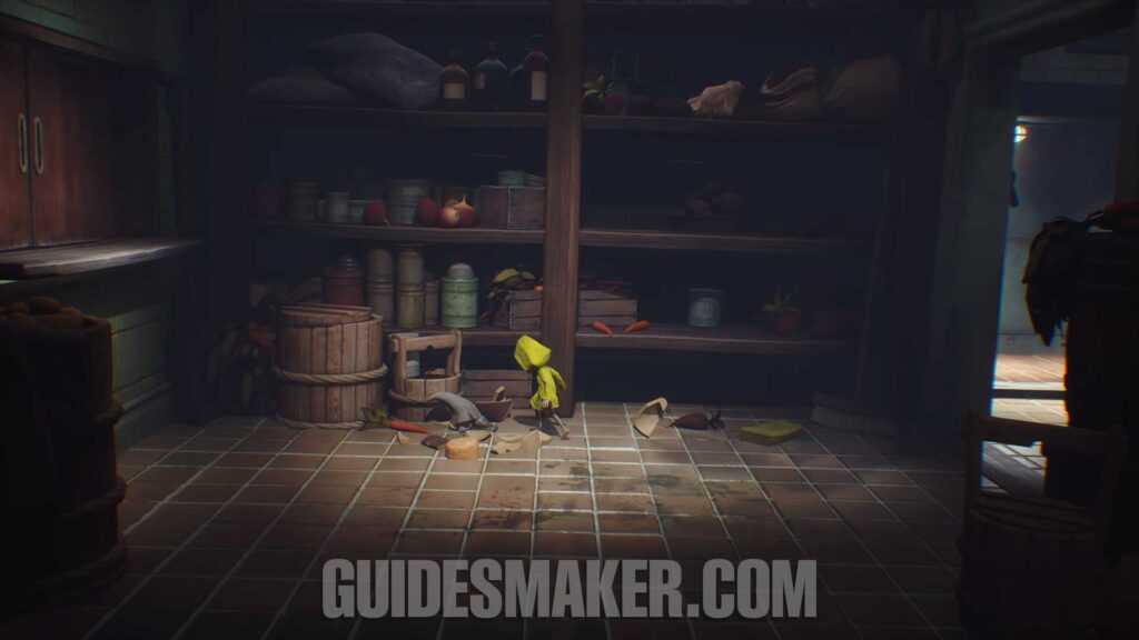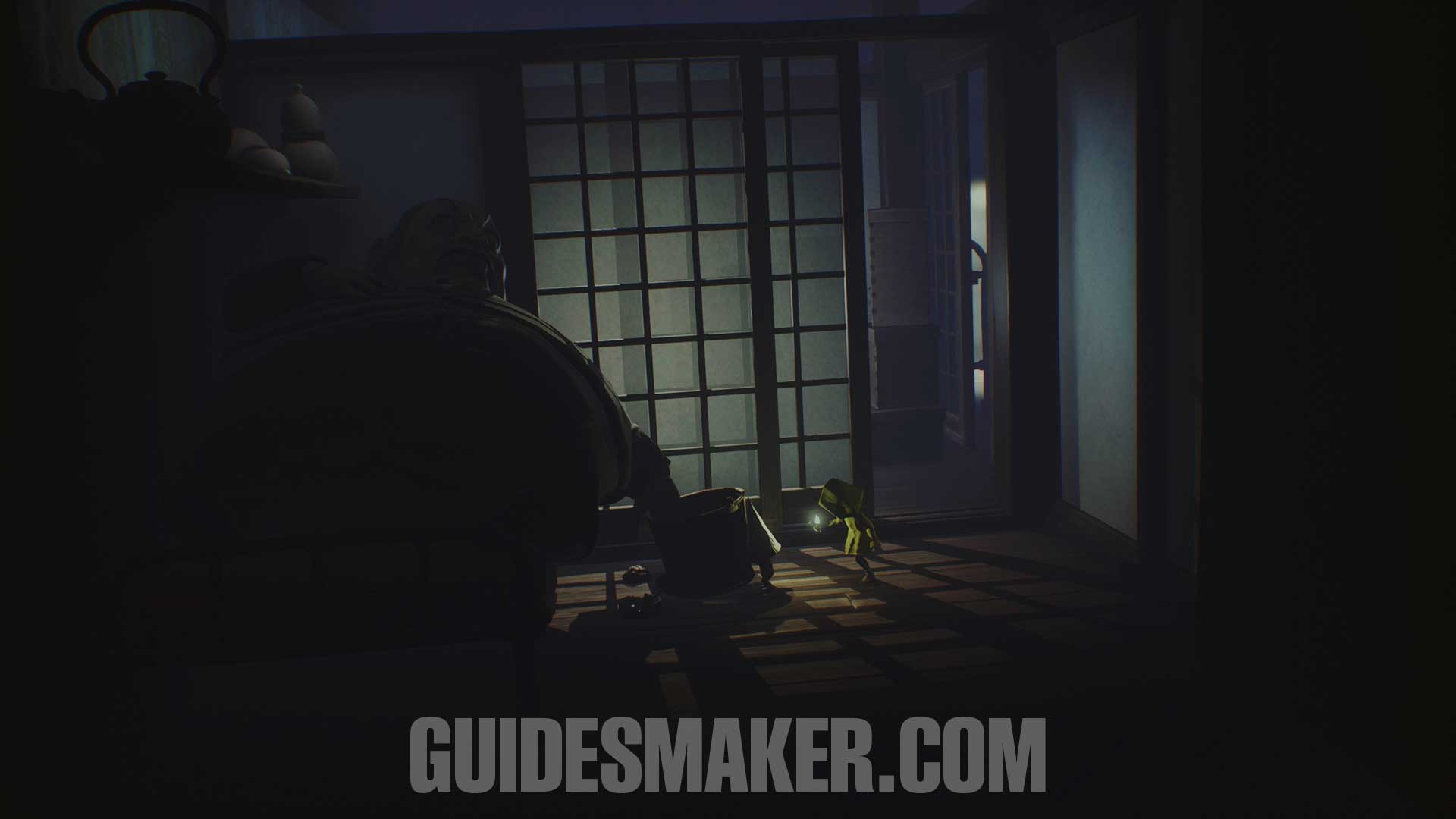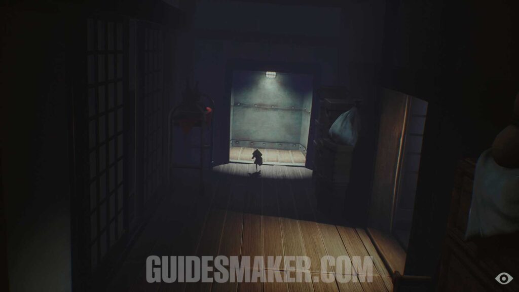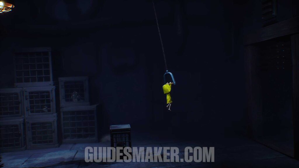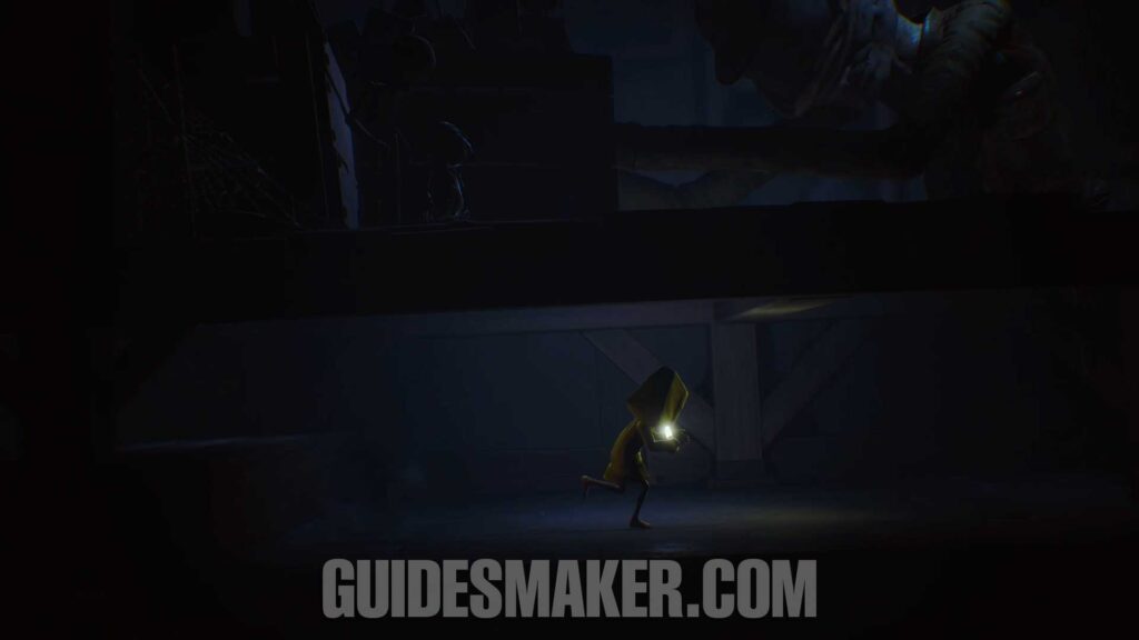 After taking the elevator up again, you will have to hide from the monster. After that, climb onto the shelves on the right side of the kitchen to activate this light point.