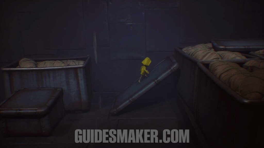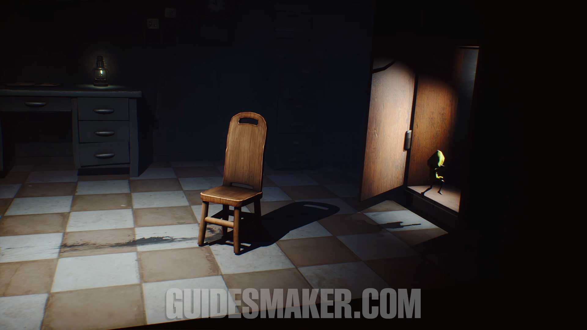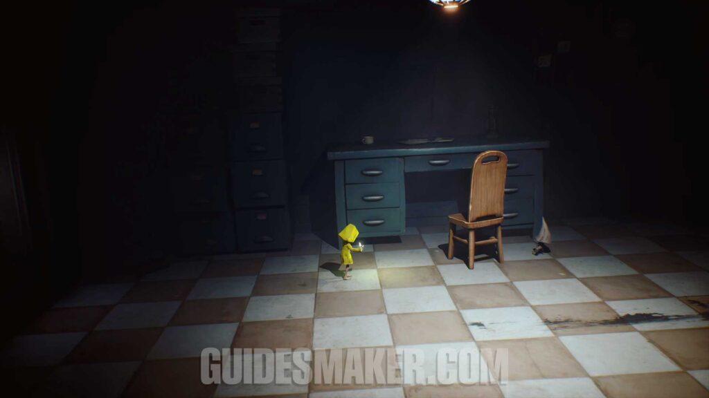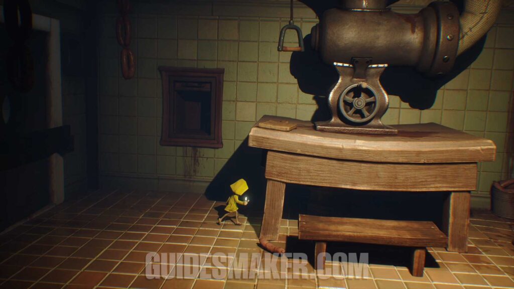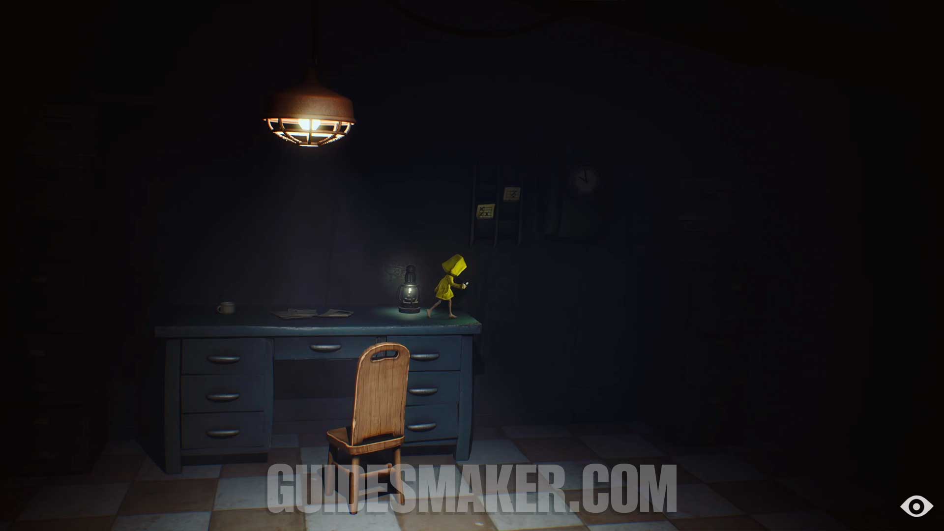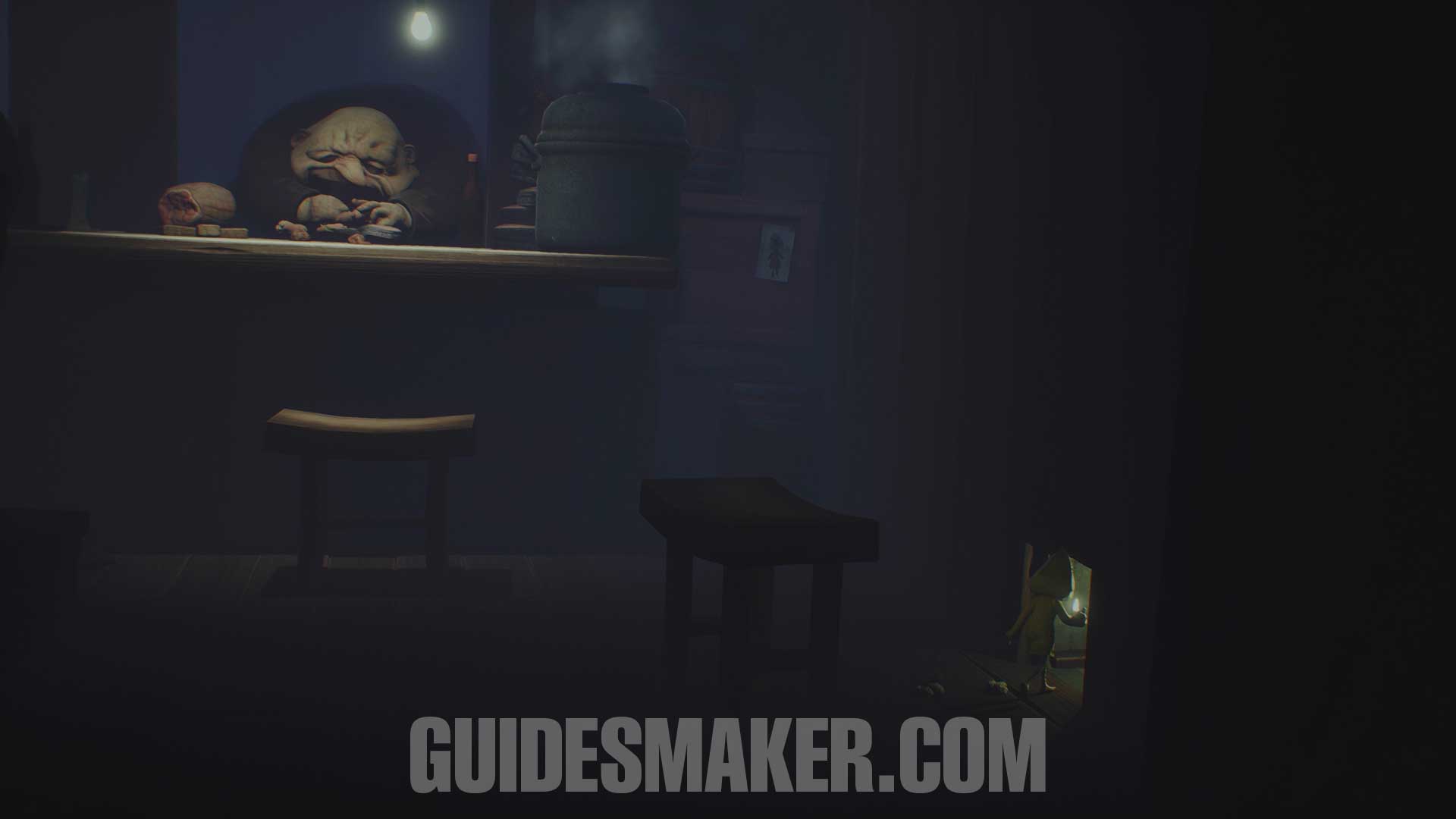After taking the elevator up again, you will have to hide from the monster. After that, climb onto the shelves on the right side of the kitchen to activate this light point.