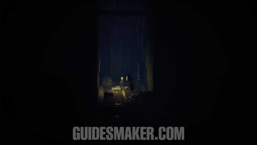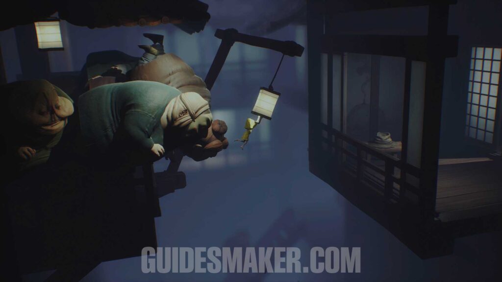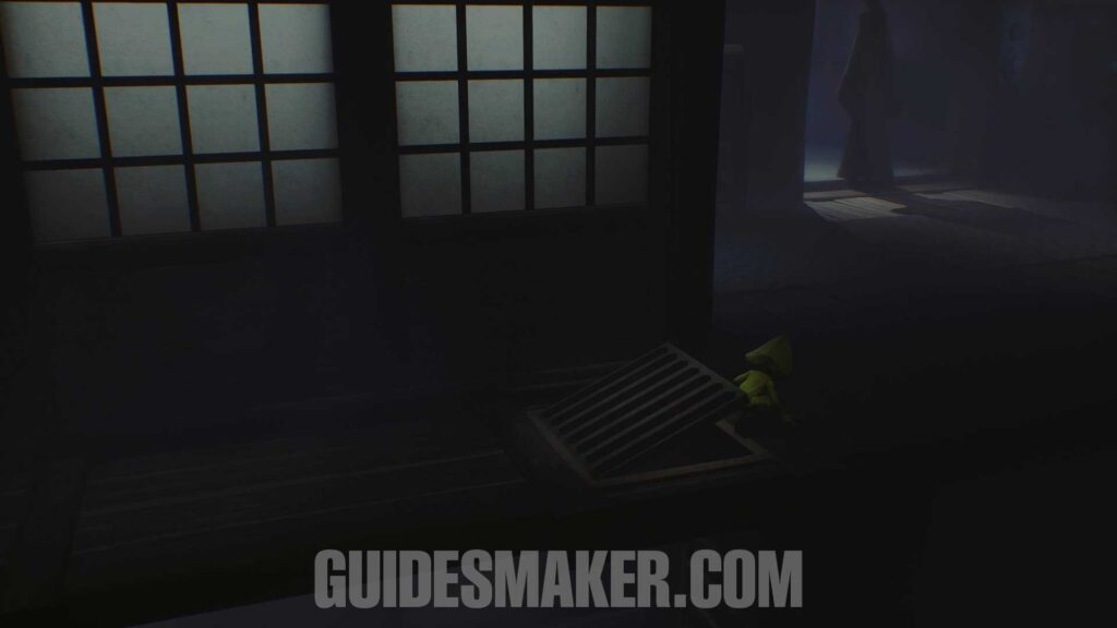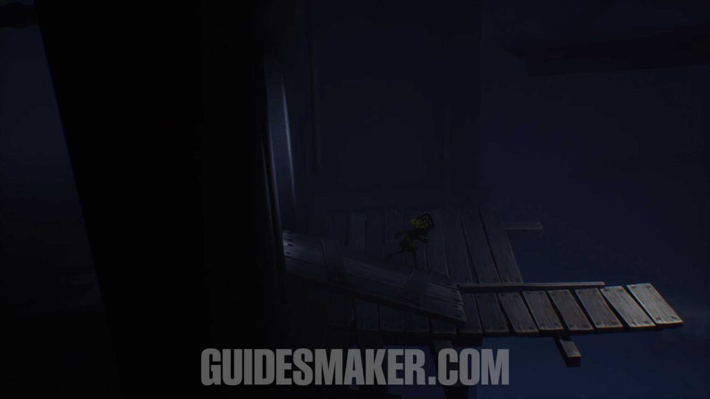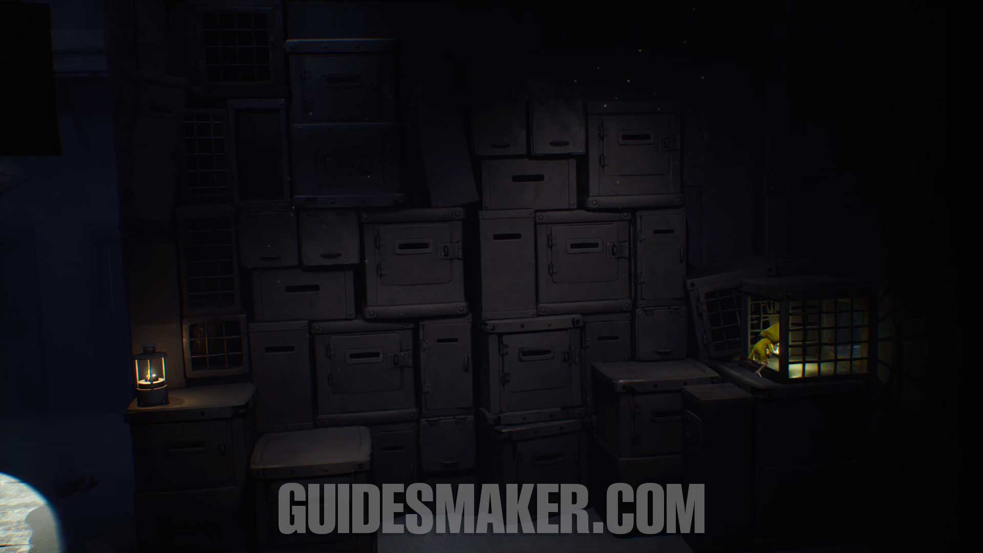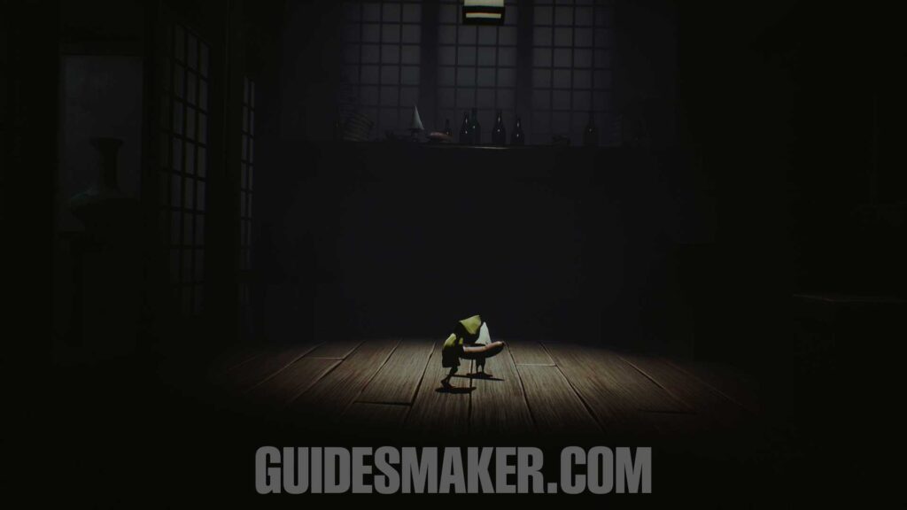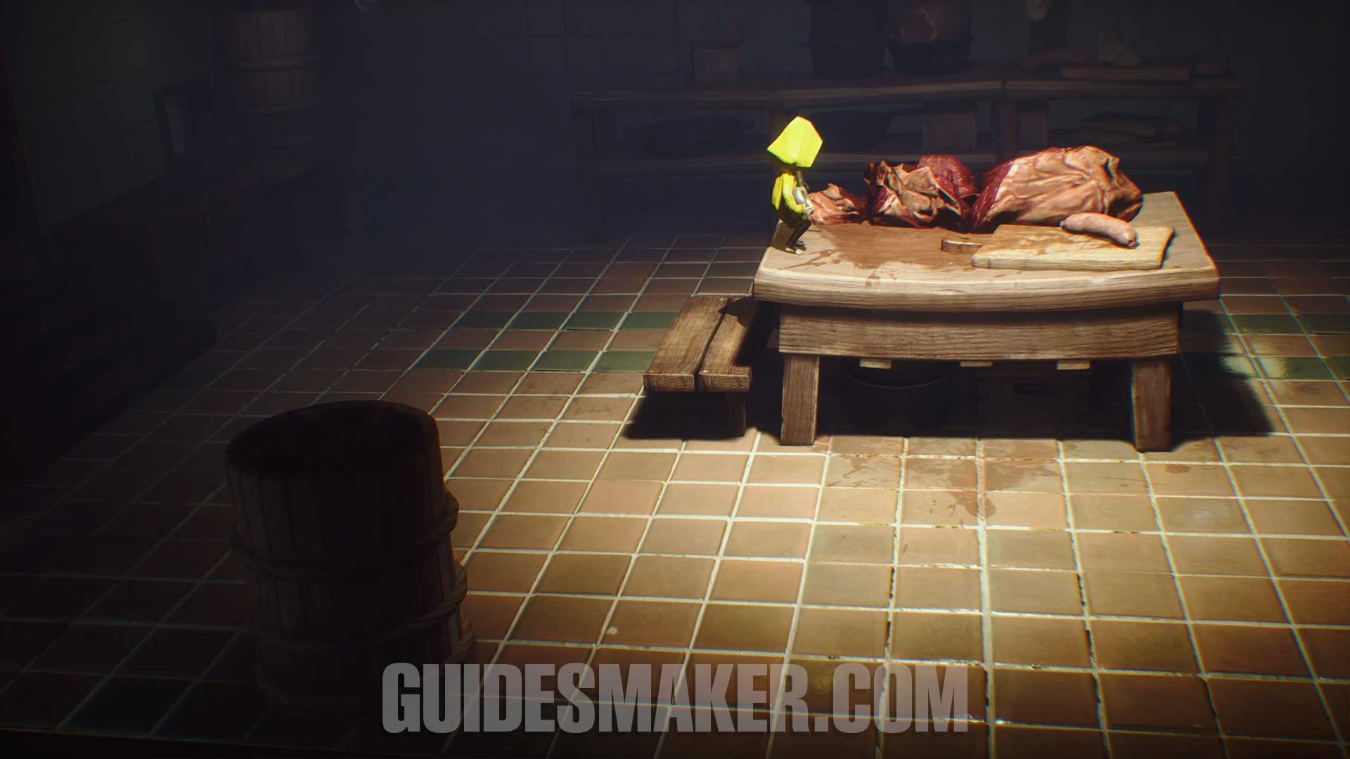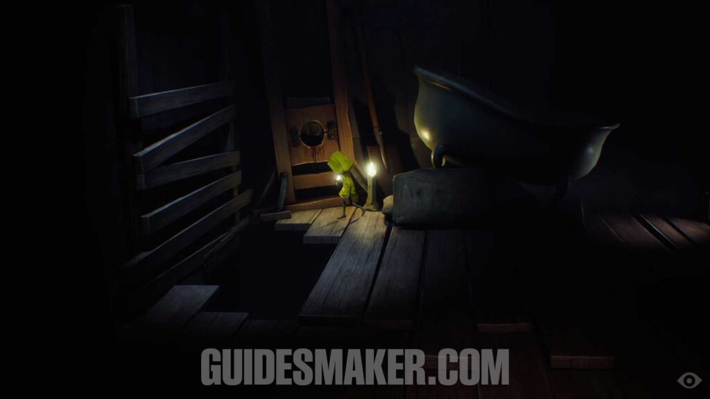 After taking the elevator up again, you will have to hide from the monster. After that, climb onto the shelves on the right side of the kitchen to activate this light point.