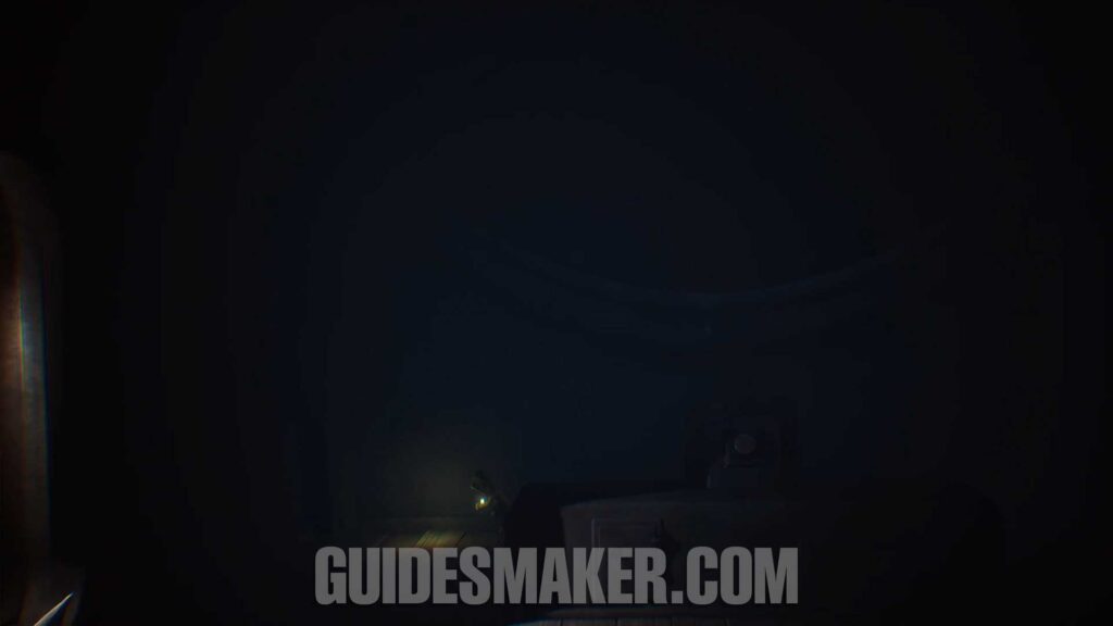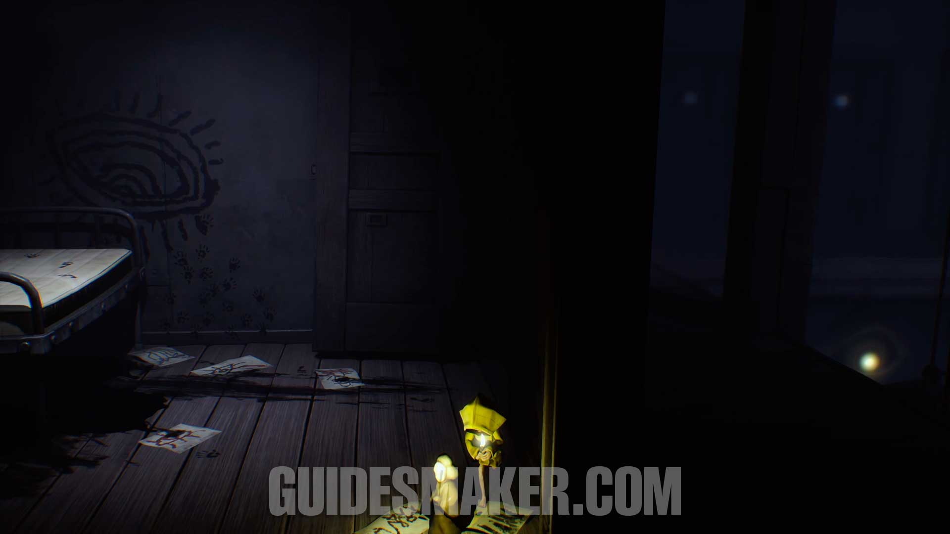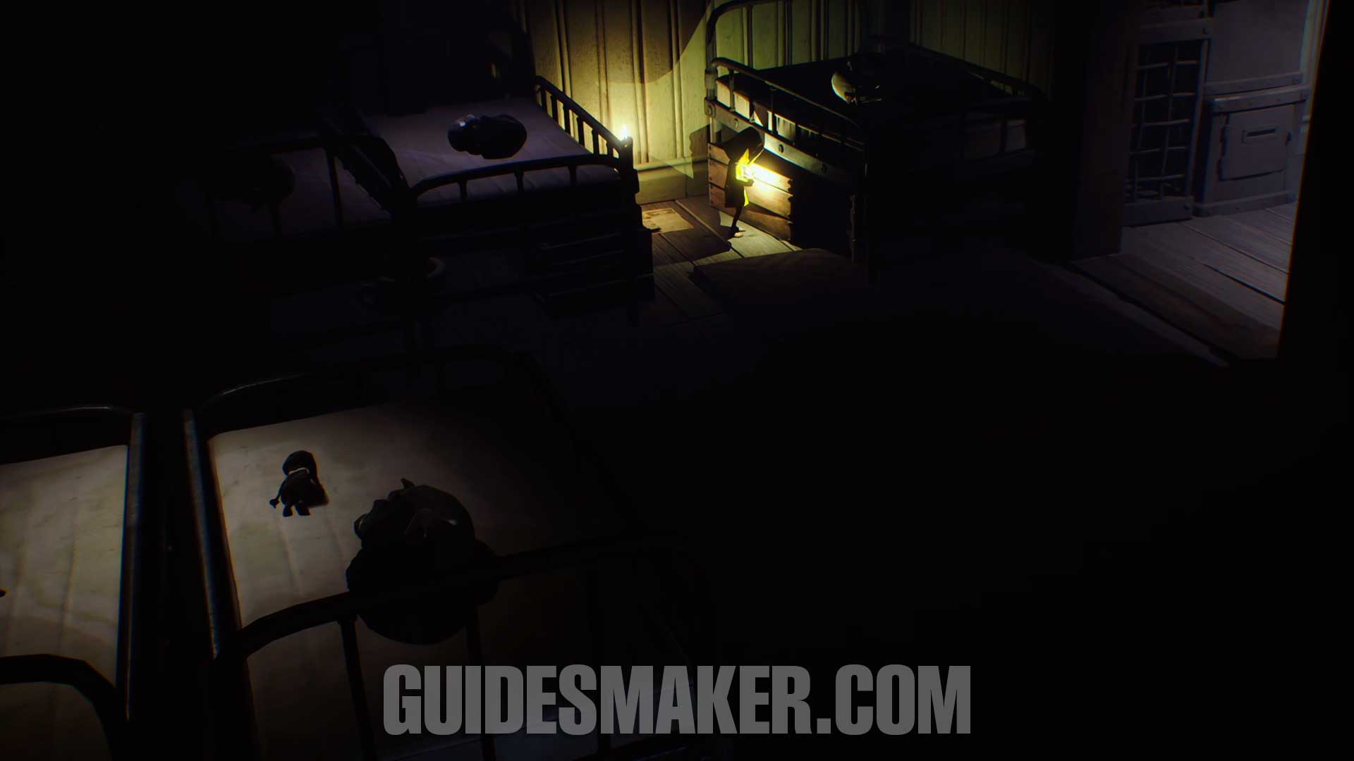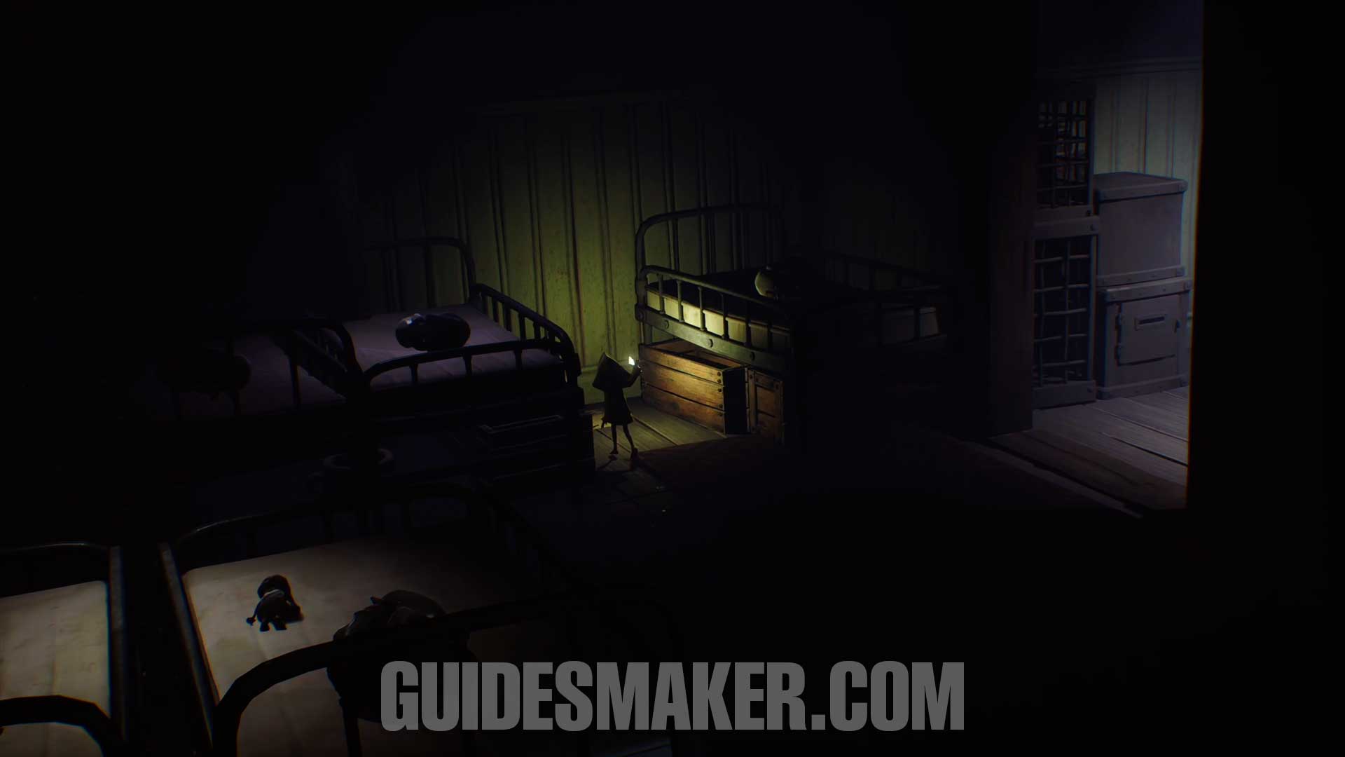 After hiding from the monster under the bed, go forward and before passing through the door, there will be a gap between two beds with a light.