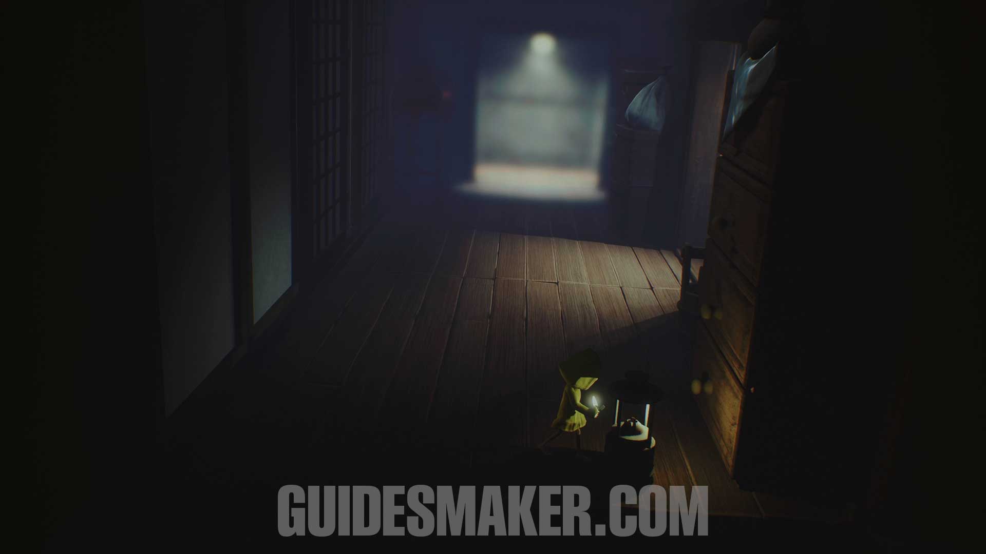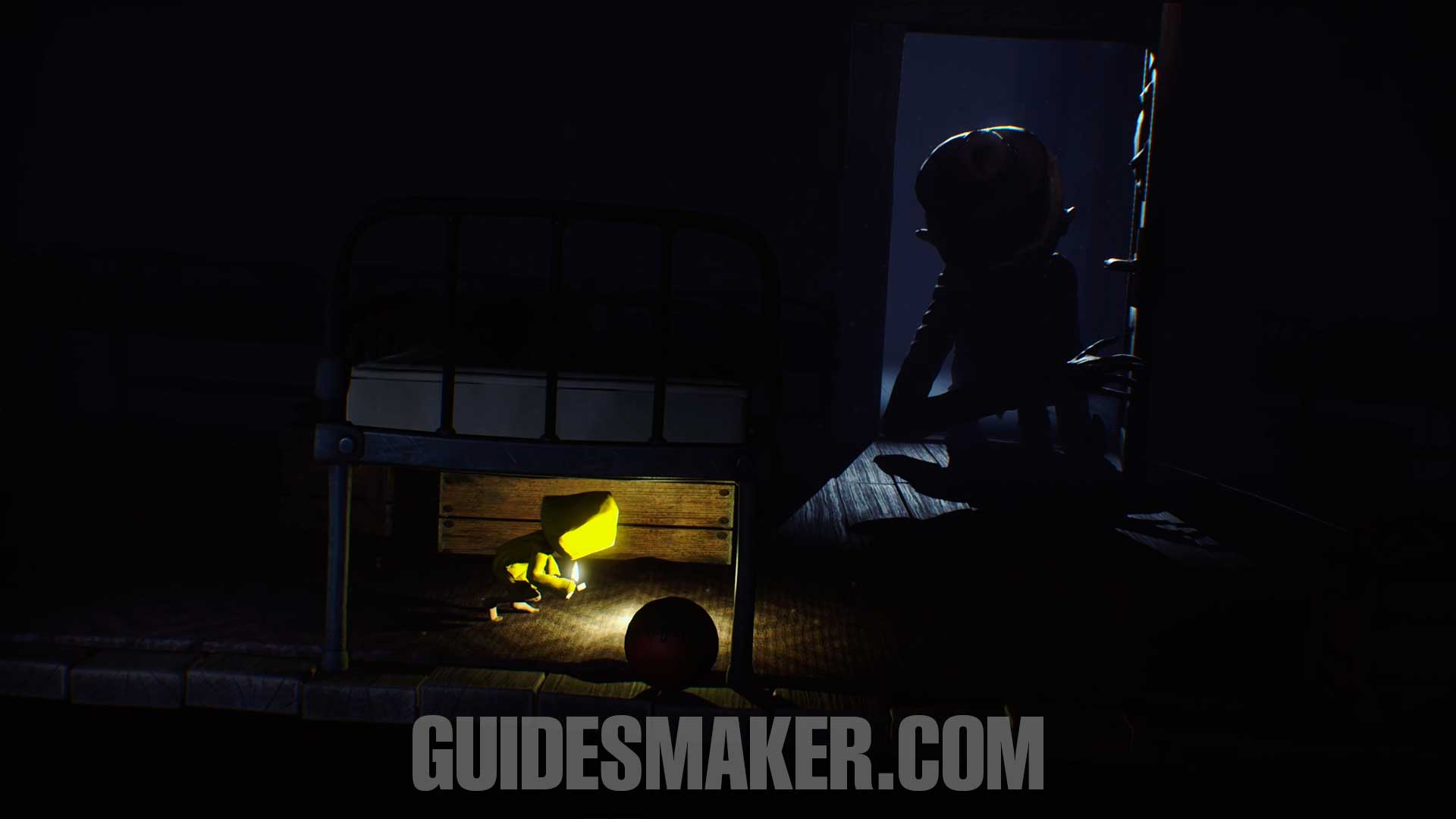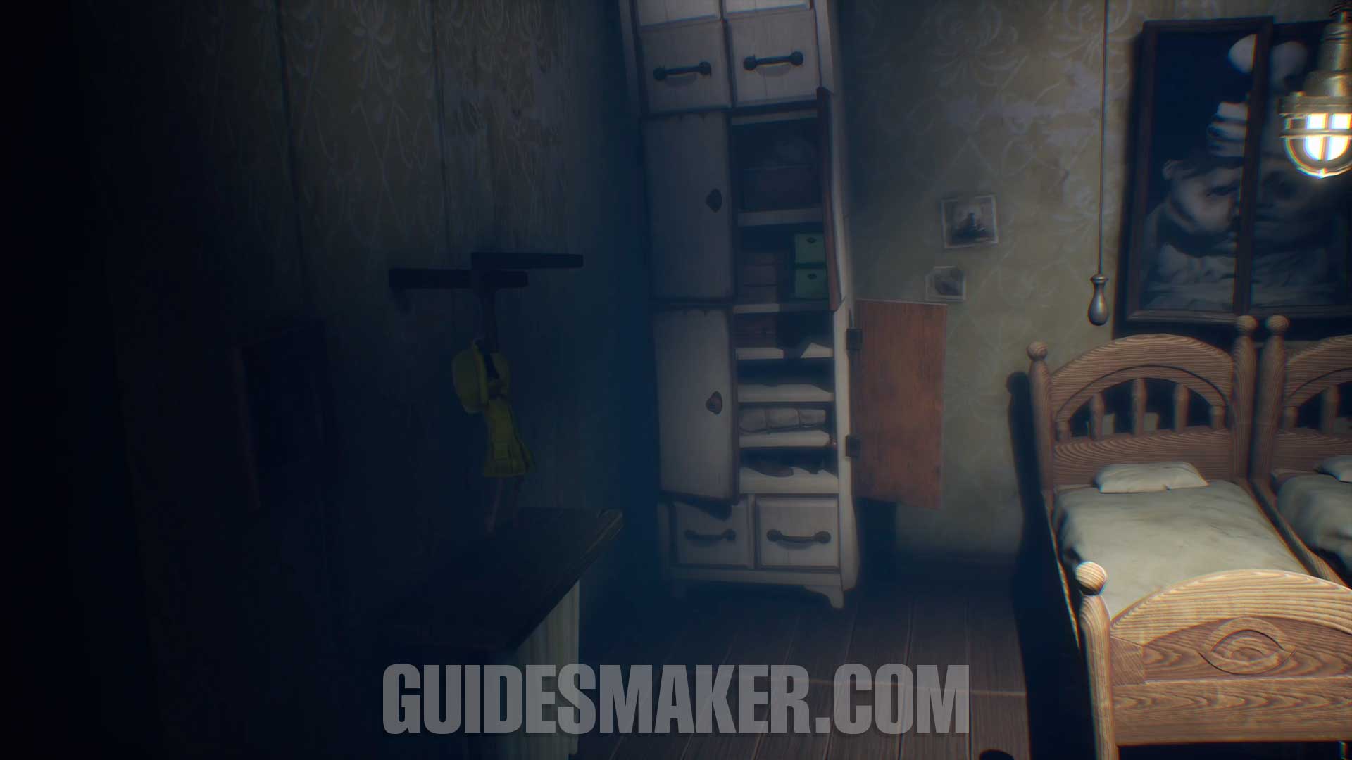 After hiding from the monster under the bed, go forward and before passing through the door, there will be a gap between two beds with a light.