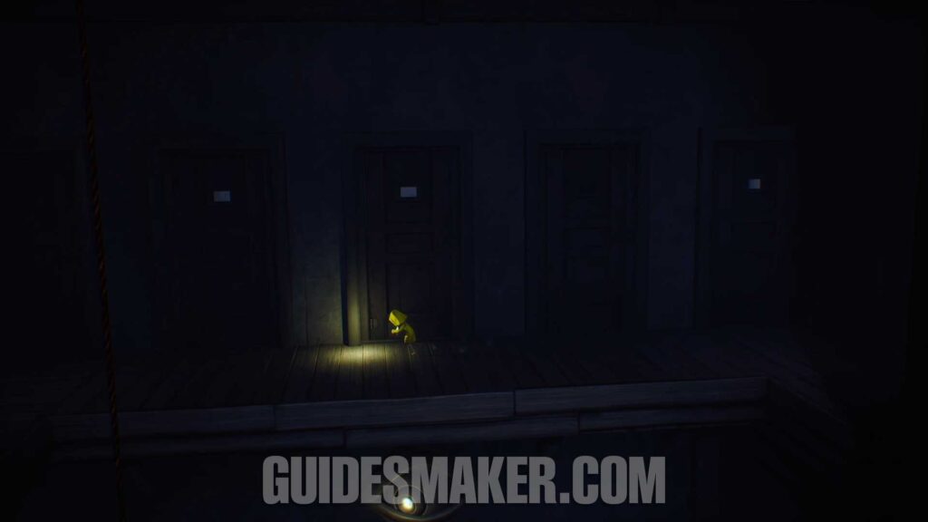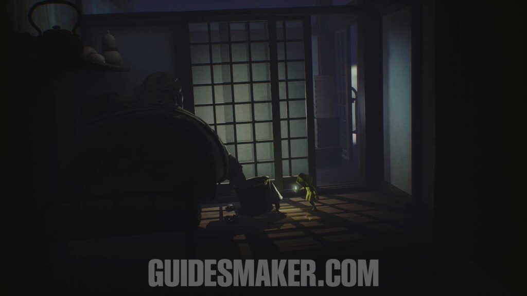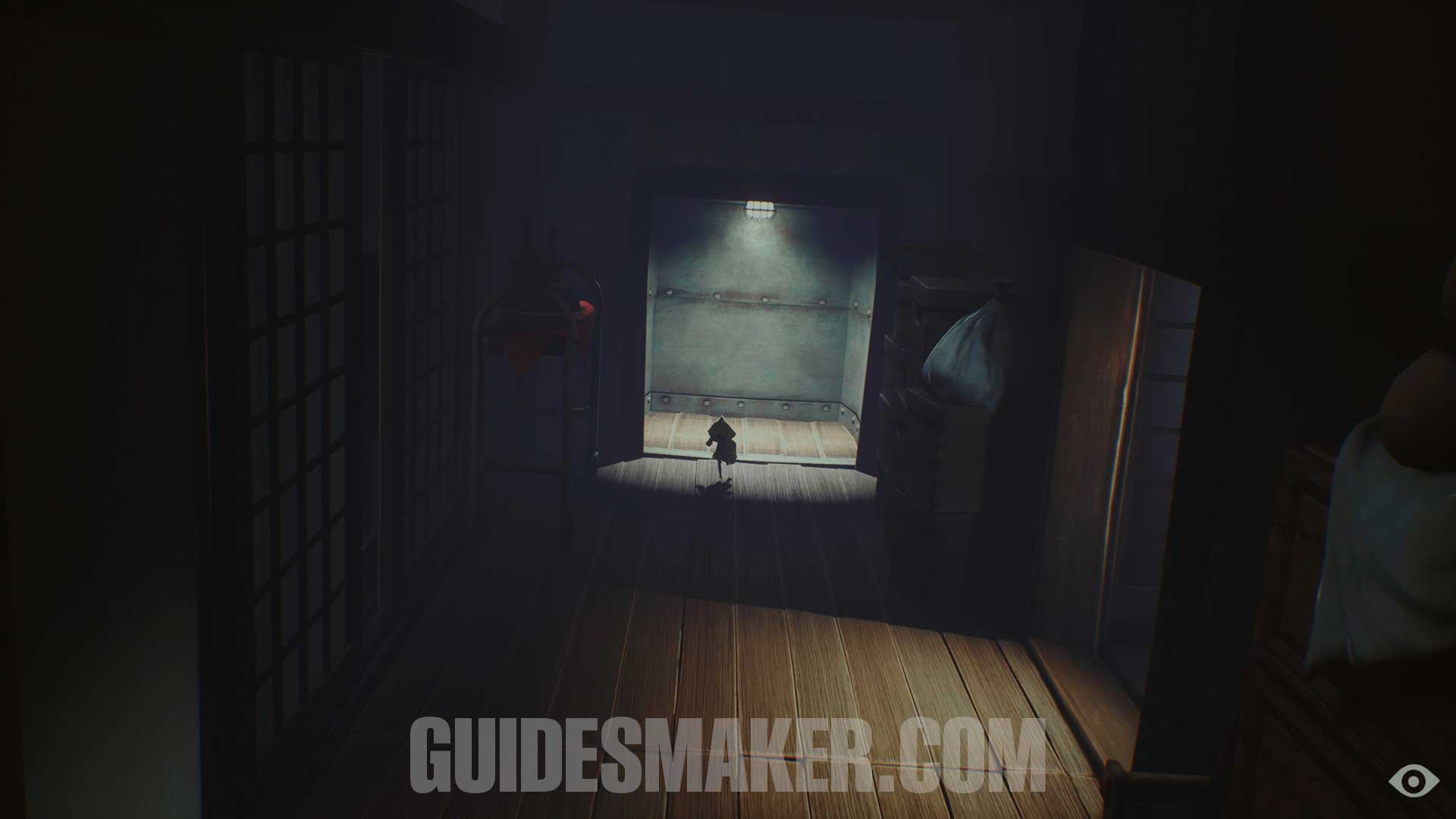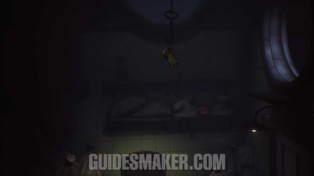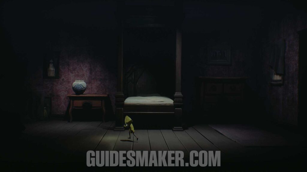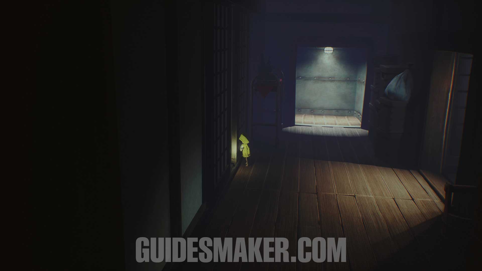 After hiding from the monster under the bed, go forward and before passing through the door, there will be a gap between two beds with a light.