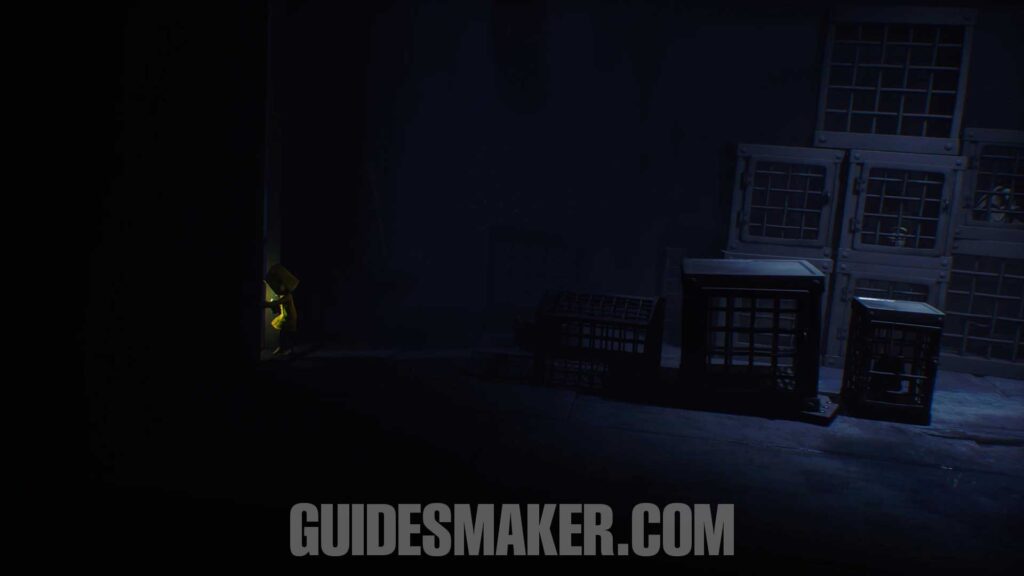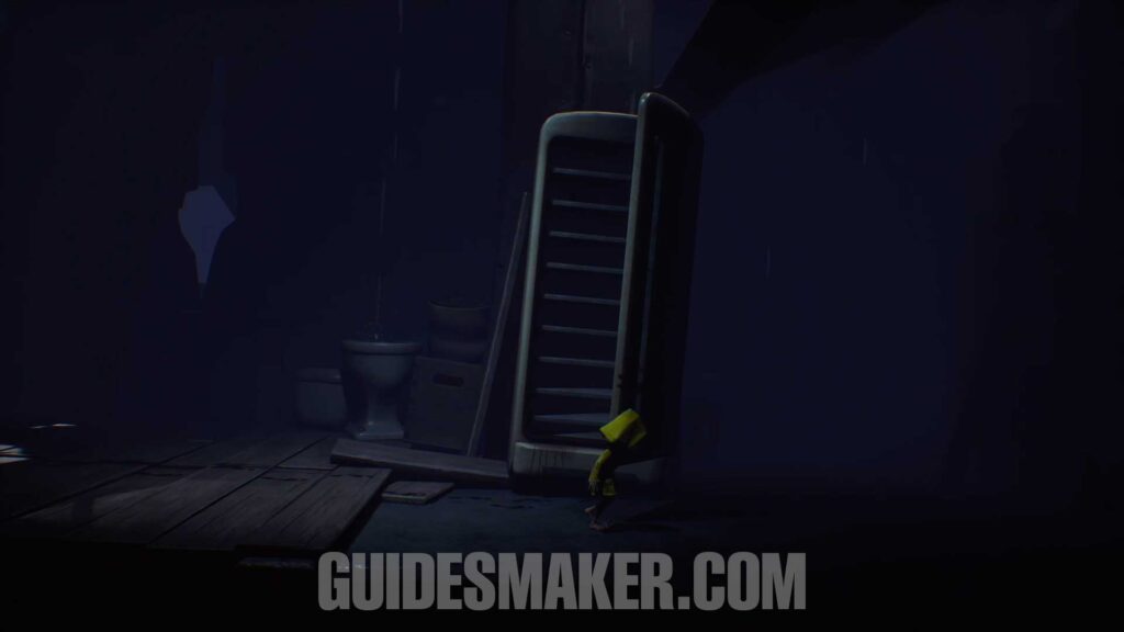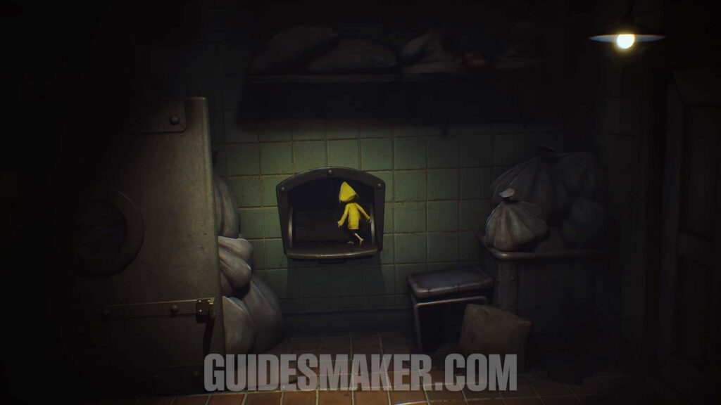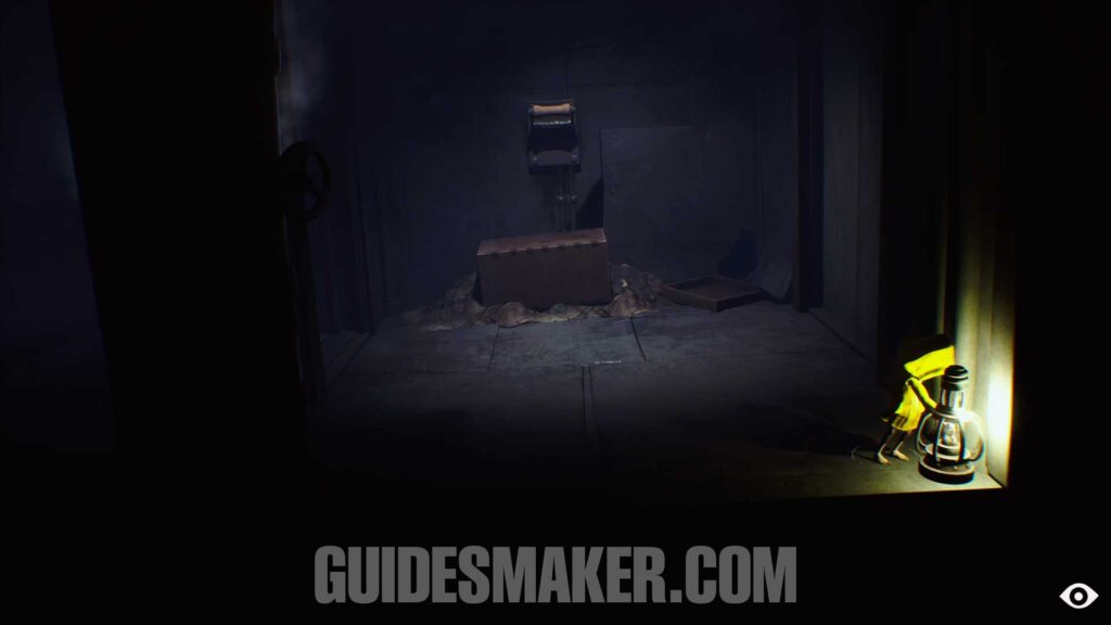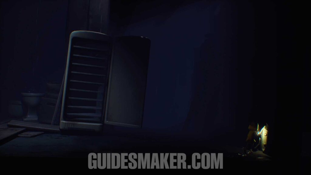 Now, climb through the refrigerator and move forward. Before you grab the lever to open the door, you can turn on this light in the corner.