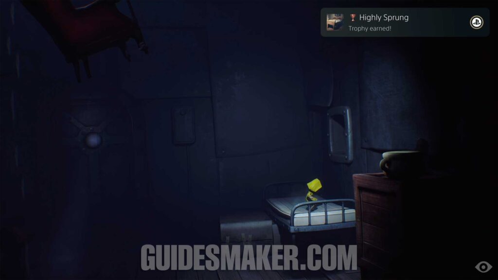After breaking the statue, proceed forward and keep jumping on the bed to obtain this trophy.
