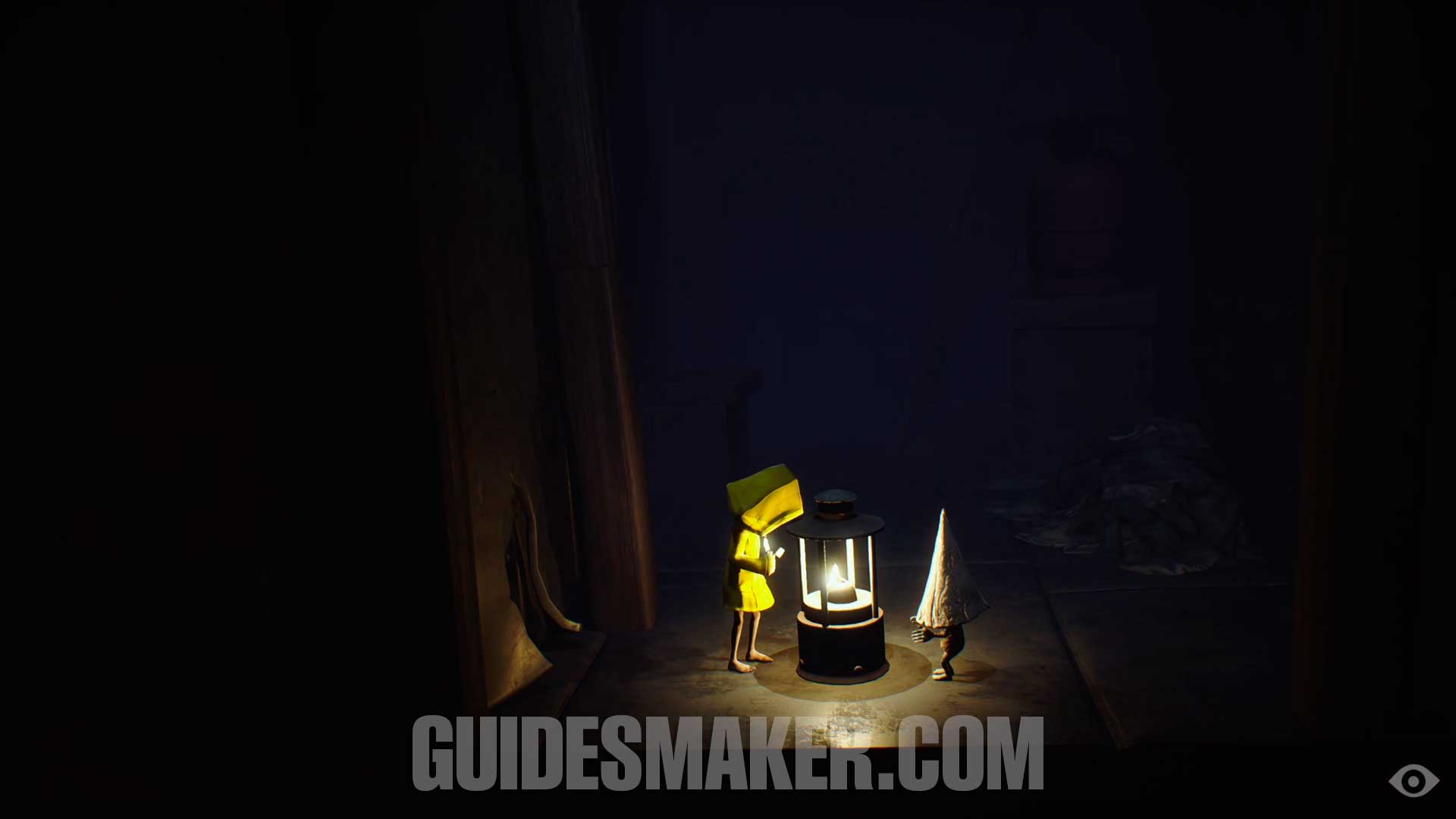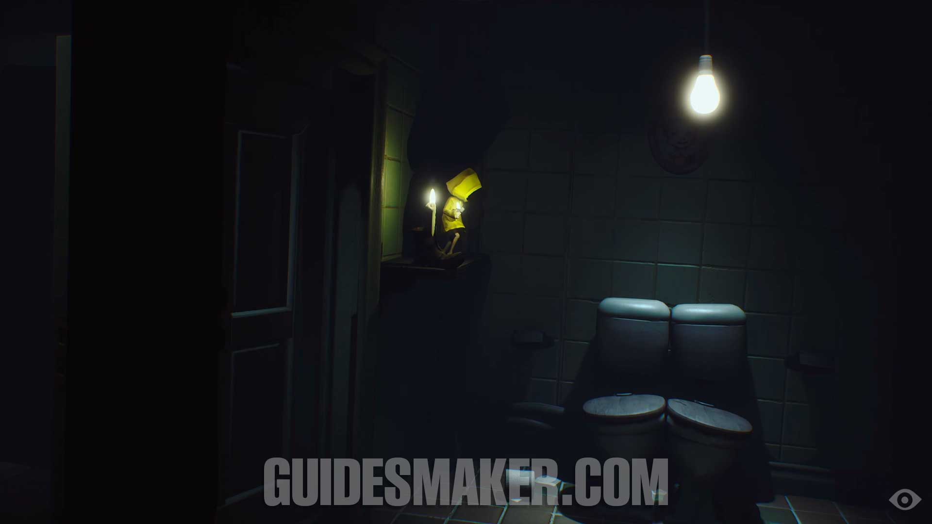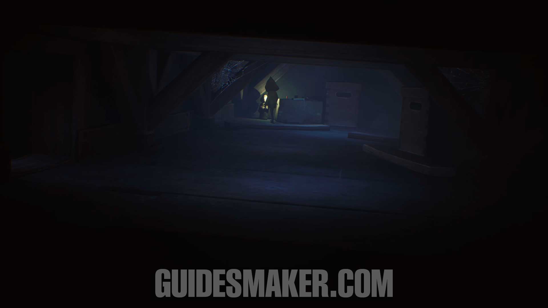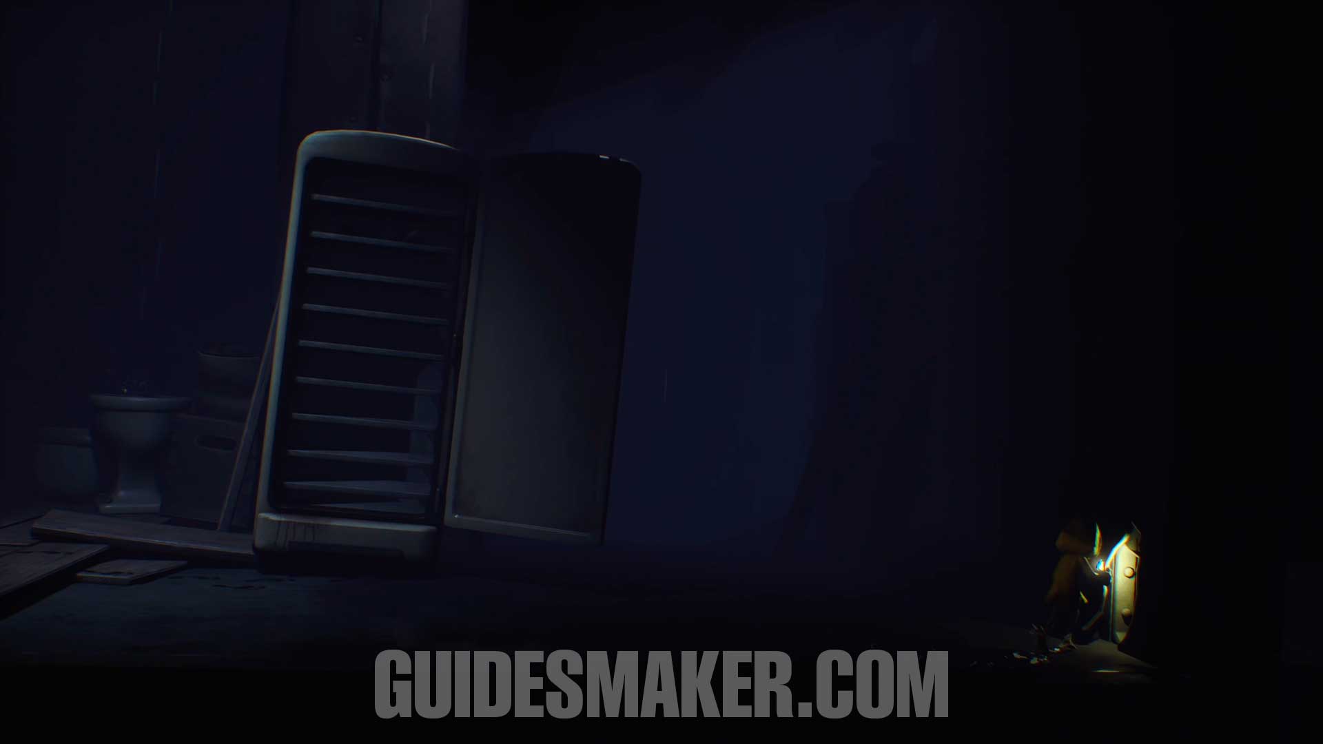 After opening the refrigerator to climb to the upper part, a gnome will come out of it. Do not climb through the refrigerator and continue forward to find a hole in the wall. Go through it to turn on this light and find the first gnome.