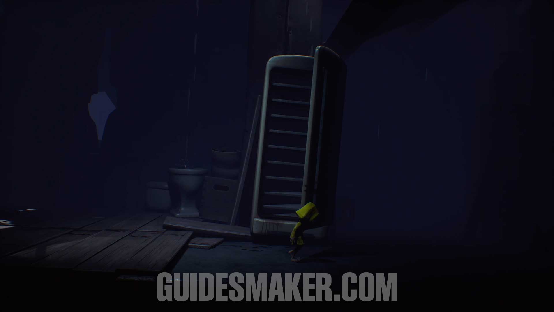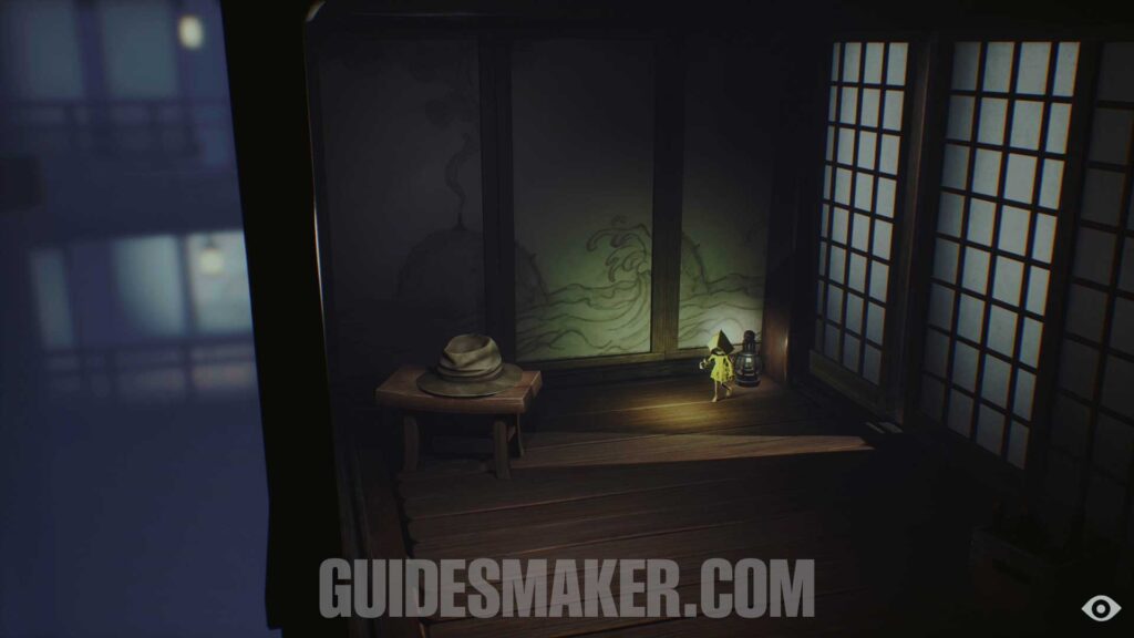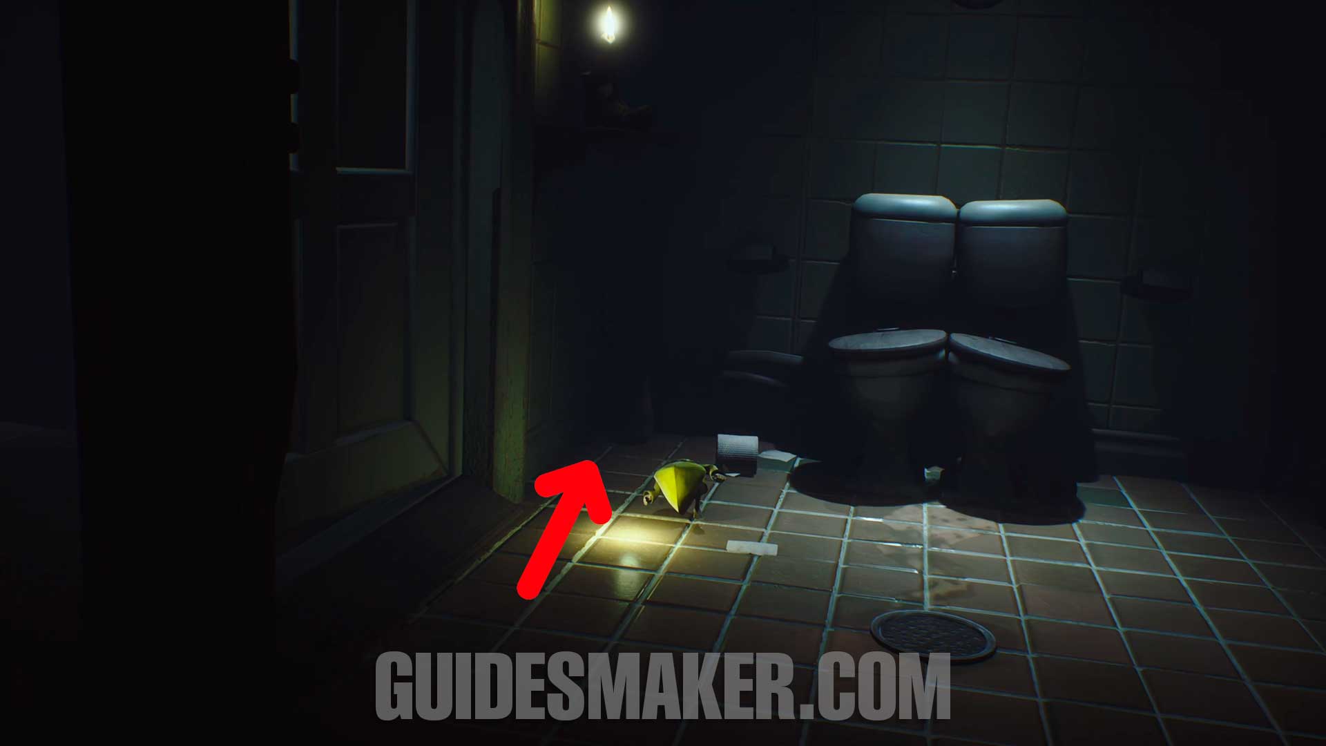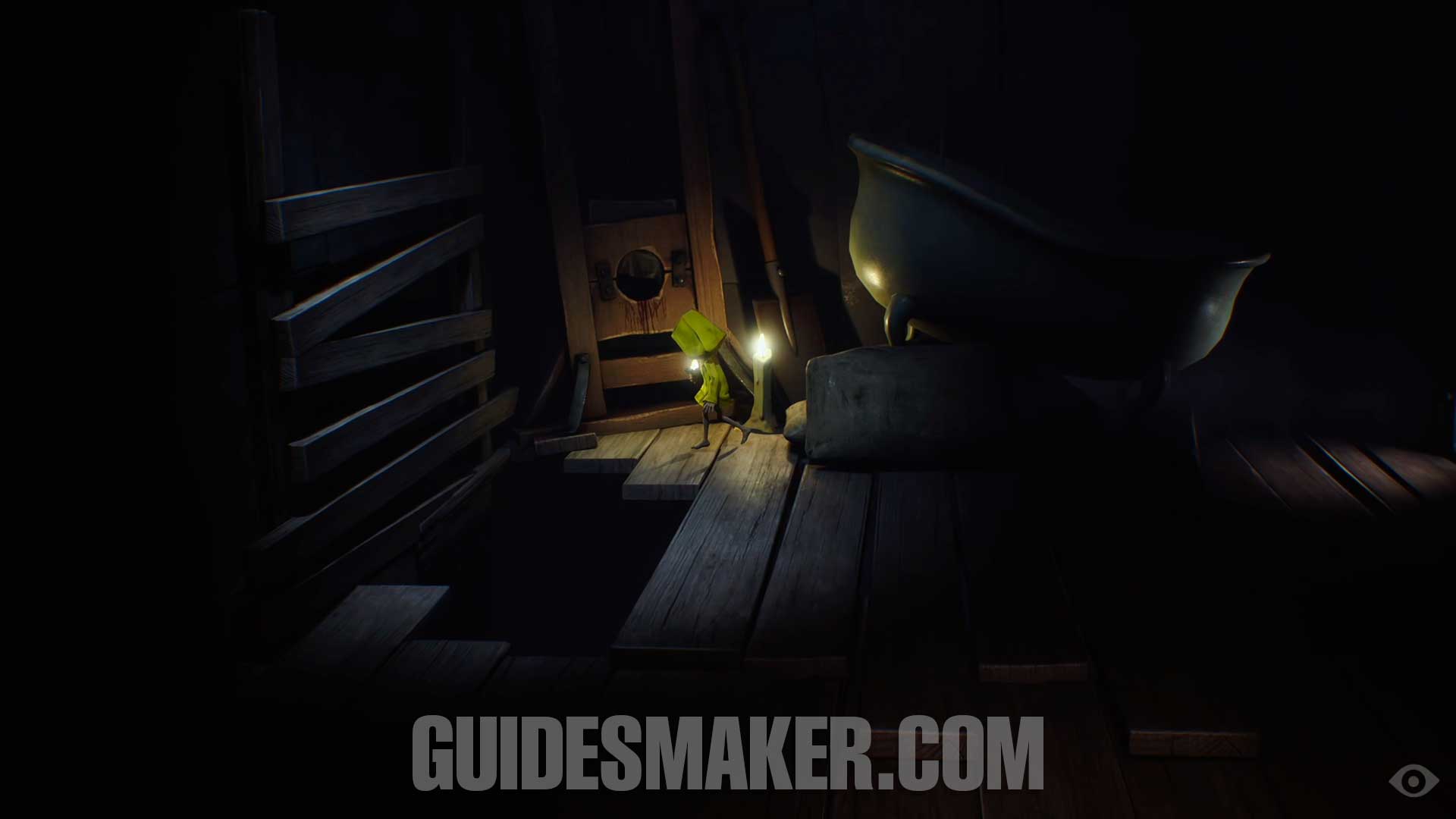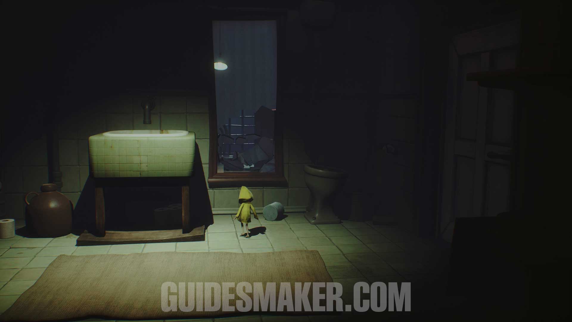After opening the refrigerator to climb to the upper part, a gnome will come out of it. Do not climb through the refrigerator and continue forward to find a hole in the wall. Go through it to turn on this light and find the first gnome.