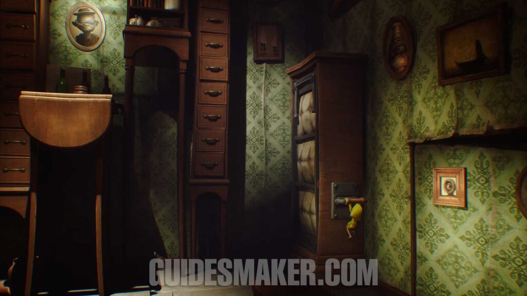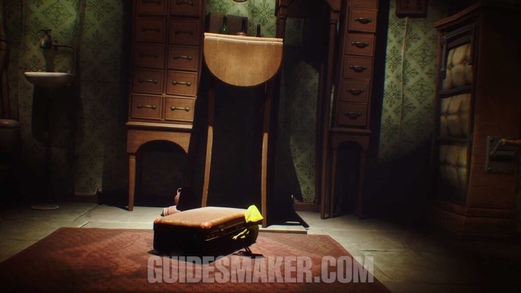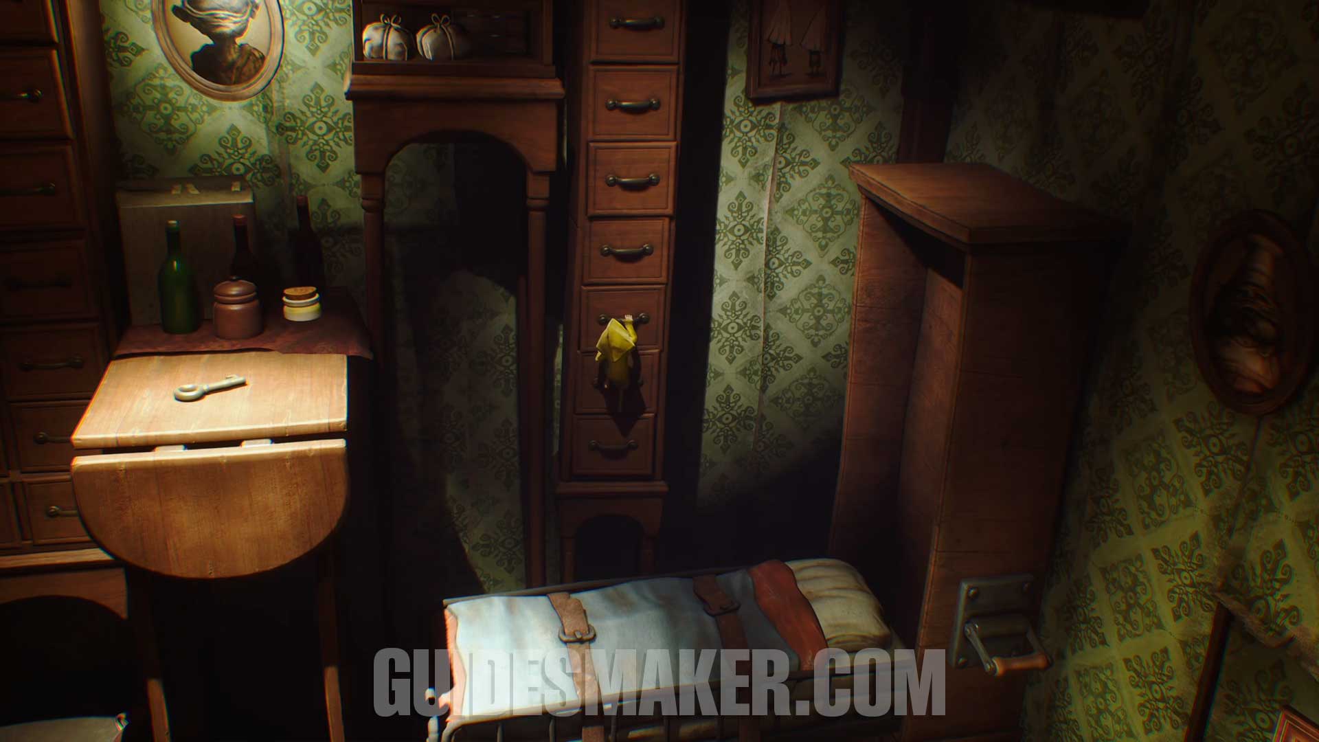From the previous collectible, you will reach a room with a suitcase. Drag the suitcase and pull the lever to make the bed fall. Climb onto the bed and then onto the cabinets. This statue will be on a shelf on the left.