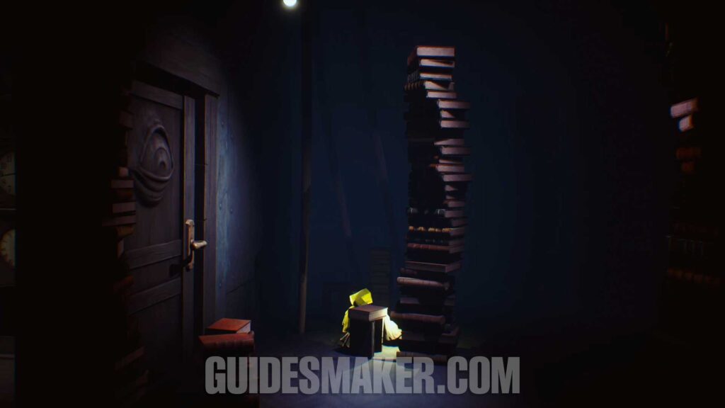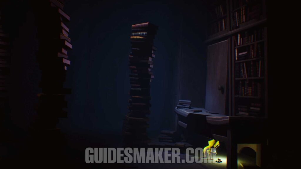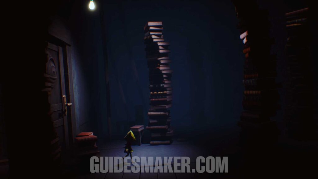 After passing the piano, climb up the stacks of books and several platforms to find this light point.