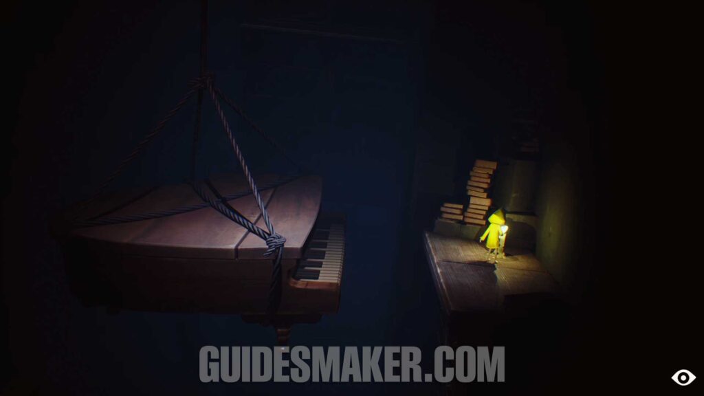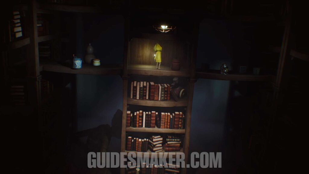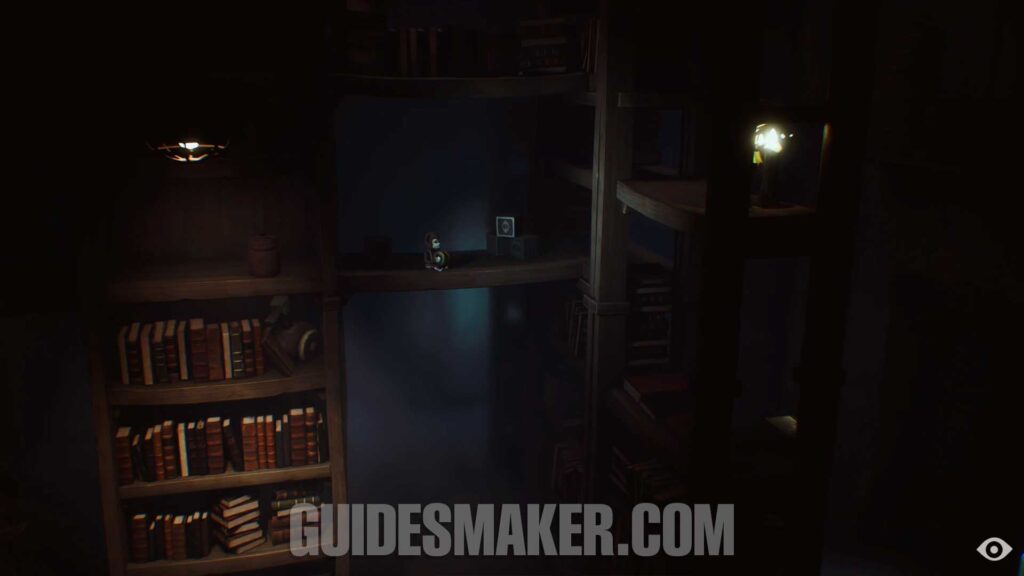 From the previous collectible, after climbing the bookshelf, this light point will be right in front of the hanging piano.