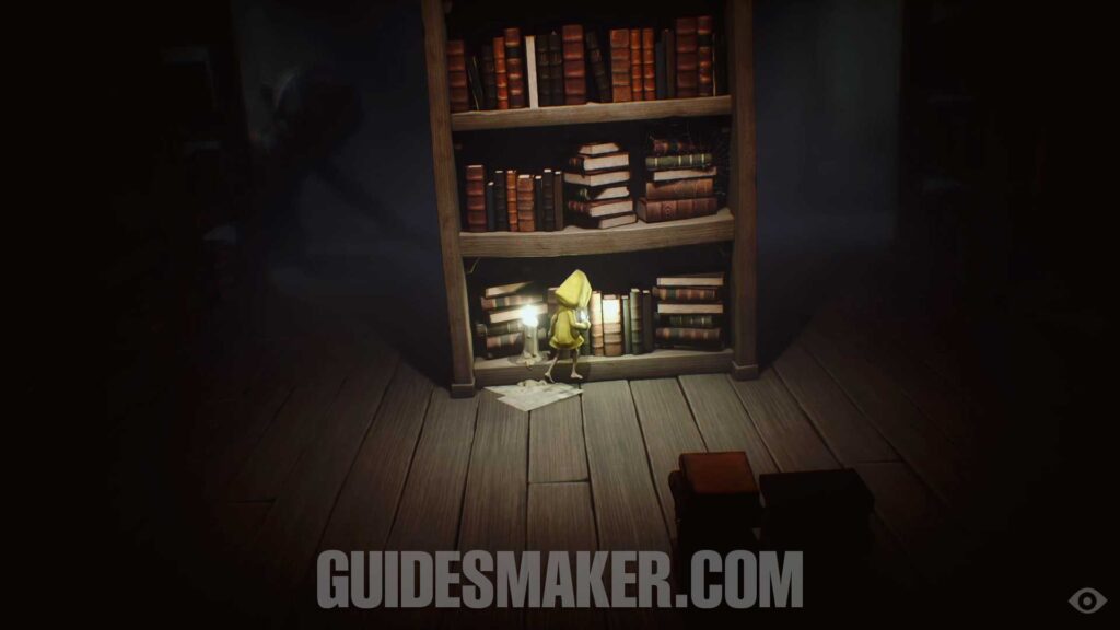 From the previous collectible, climb down the bookshelf and this light point will be at the bottom of it.