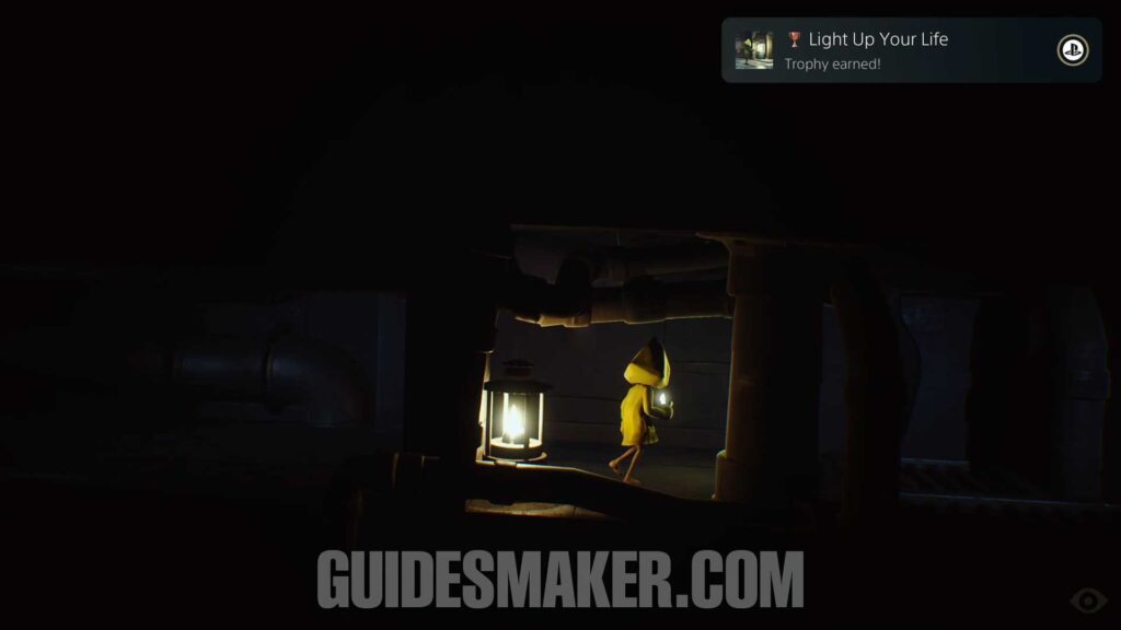 After passing through a section where you have to push a cart and open a door, you will be inside the ducts again. This light point will be right in front of you, before the monster in this area appears. If you have lit all 20 light points up to this point, you will receive the ‘Light Up Your Life’ trophy. In total, there are 30 light points in the game; the other 10 are optional and will be shown in the next chapters.